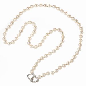 PAIO DI ORECCHINI DI PERLE E BRACCIALE IN GIADA in oro bianco 18kt, impreziositi al centro da perle di mm 5 [..]