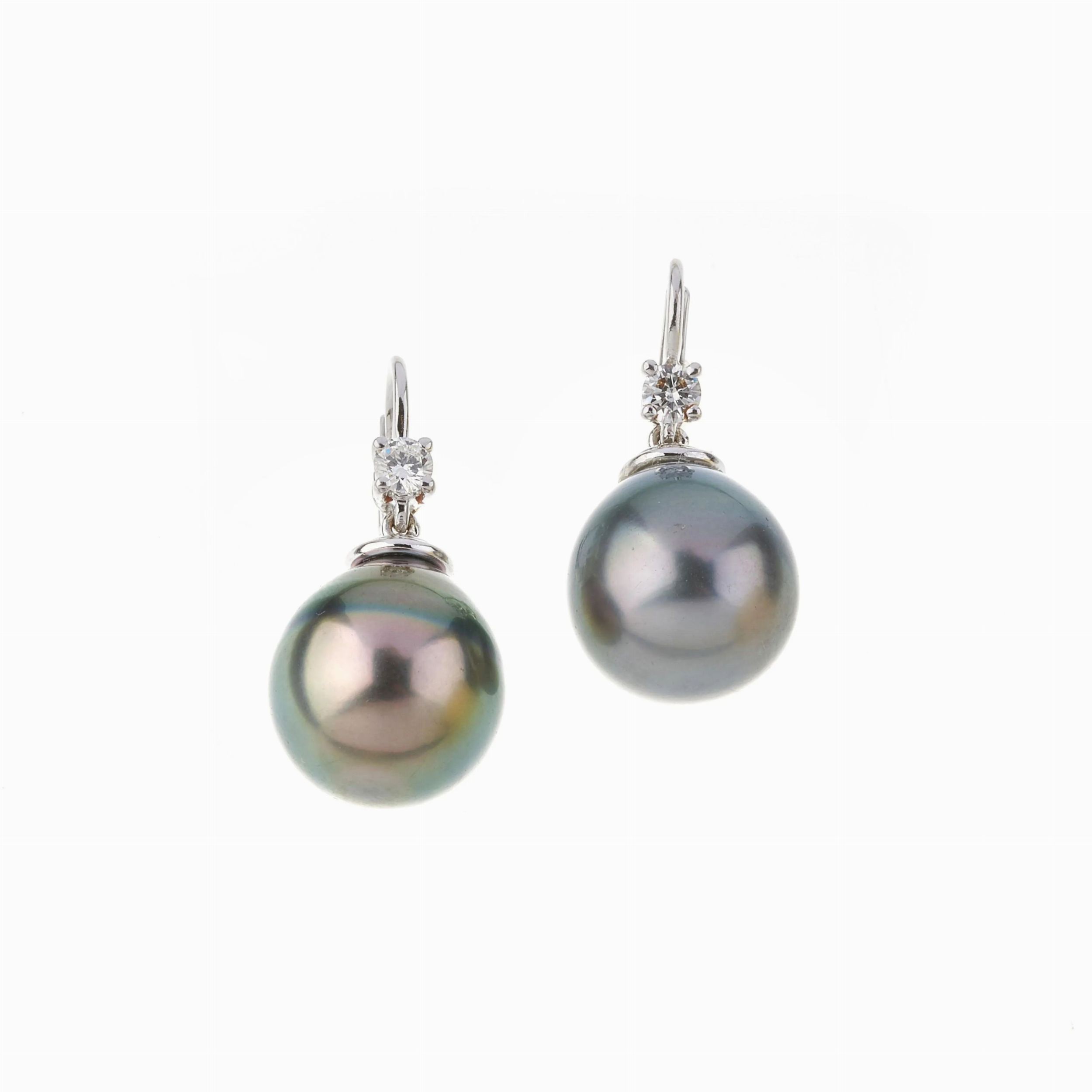 PAIO DI ORECCHINI PENDENTI CON PERLE TAHITI E DIAMANTI