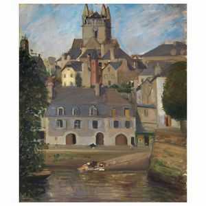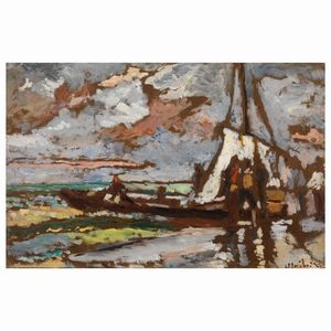 Giovanni March (Tunisi 1894 - Livorno 1974) VEDUTA DI PAESE olio su tela, cm 65x55 firmato in alto a destra [..]