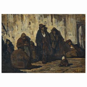 Luigi Michelacci (Meldola 1879 - Firenze 1959) I MENDICANTI olio su tavola, cm 25x35 firmato in basso [..]