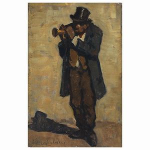 Luigi Michelacci (Meldola 1879 - Firenze 1959) SUONATORE DI TROMBA olio su cartoncino, cm 23x14 firmato [..]