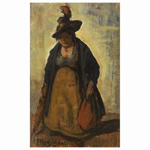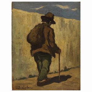 Luigi Michelacci (Meldola 1879 - Firenze 1959) VIANDANTE olio su tavoletta, cm 29x15 firmato in basso [..]