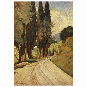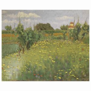 Umberto Gambassini (Firenze 1866 - 1925) PAESAGGIO olio su tela, cm 37x47 firmato e datato '1917' in basso [..]