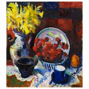 Eduardo Gordigiani (Firenze 1866 - 1961) NATURA MORTA CON FIORI olio su tela, cm 65x75 firmato in basso [..]