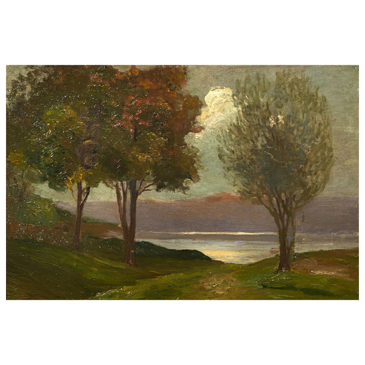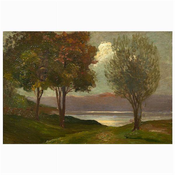 Pietro Fragiacomo (Trieste 1856 - Venezia 1922) LAGO DI CAVAZZO olio su tela, cm 40x59,5 firmato in basso a destra retro: cartiglio dell'Esposizione Internazionale d'Arte di Venezia (1924)