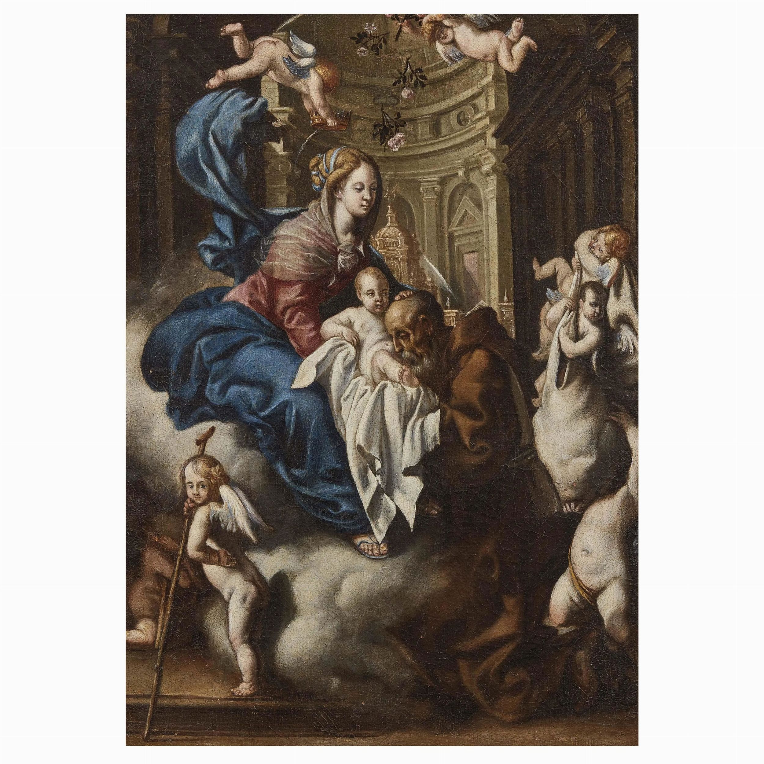 MADONNA APPARE A SAN FELICE DA CANTALICE olio su tela, cm 47x33