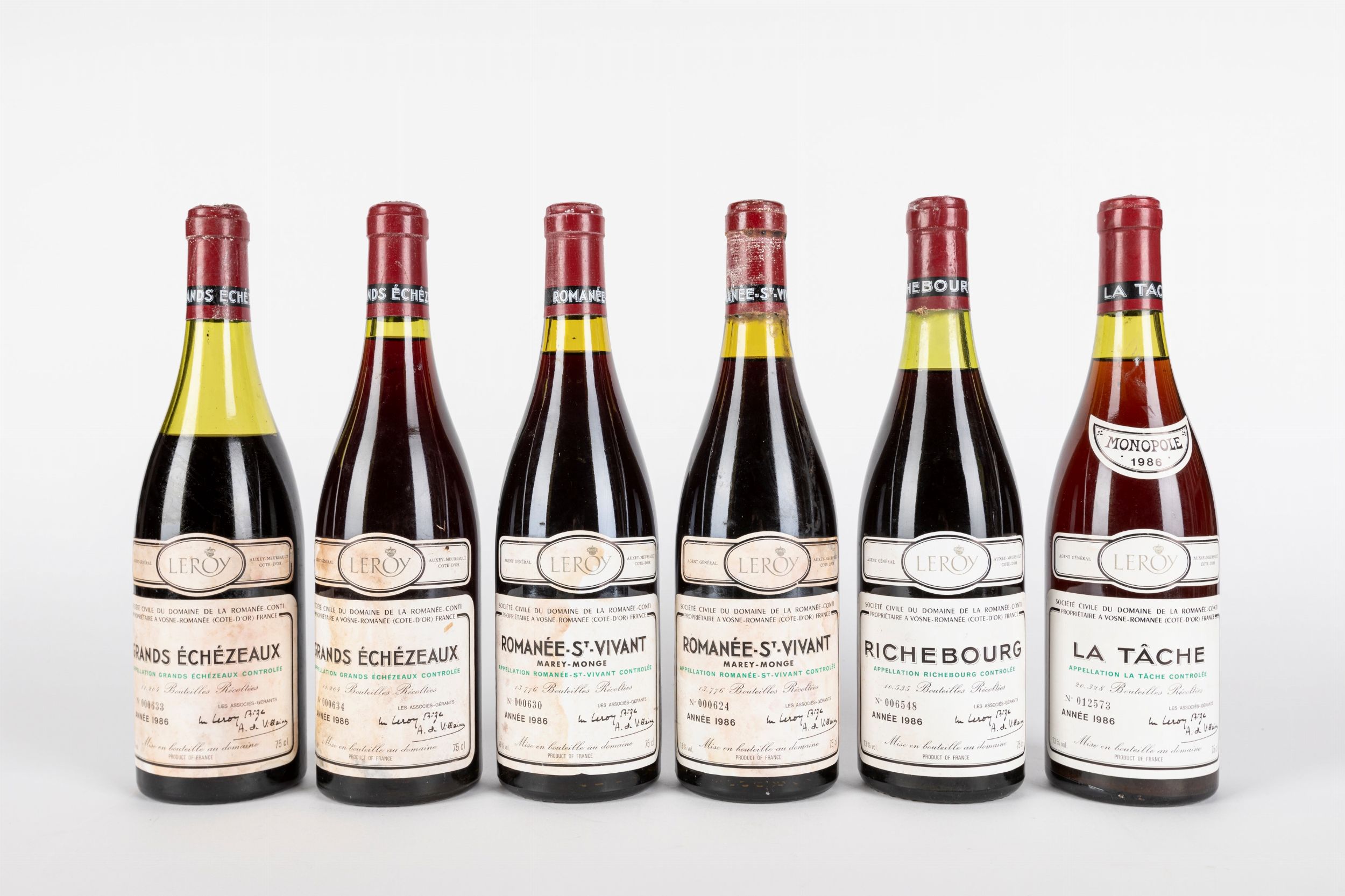 1986 Domaine de la Romanee-Conti (6BT) 2 bt Romanee St. Vivant 1 bt Richebourg 2 bt Grands Echezeaux 1 bt La Tache