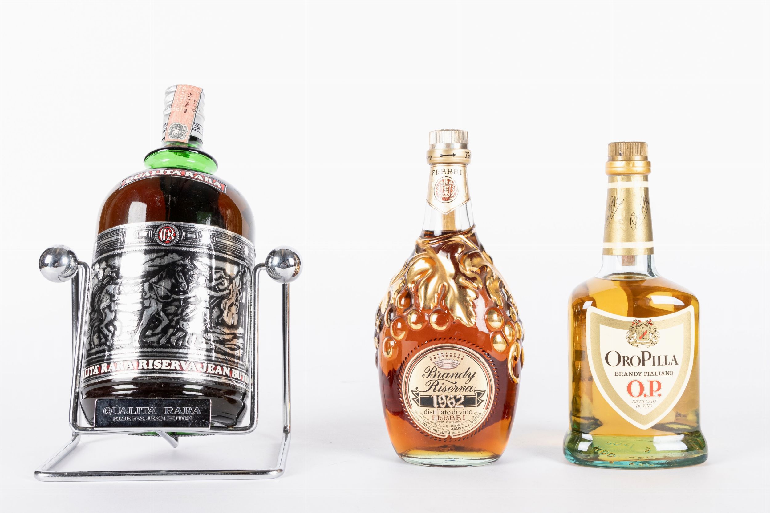 1 Jean Buton Qualità rara 1 Oropilla Brandy italiano 1 Brandy Fabbri Riserva 1962 Vetreria Etrusca
