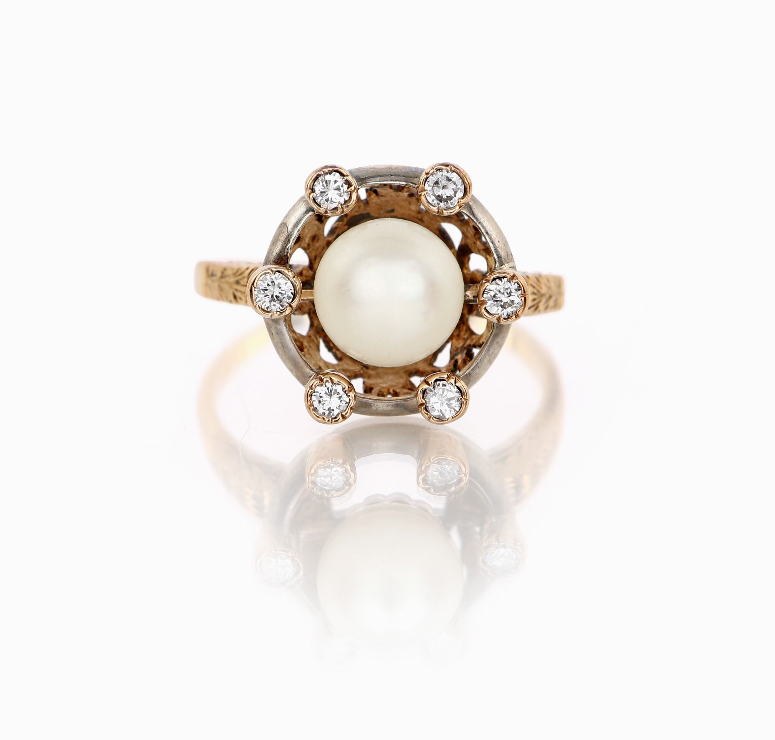 Oro giallo 750/000 e argento. Perla mm 7. Peso complessivo gr. 6