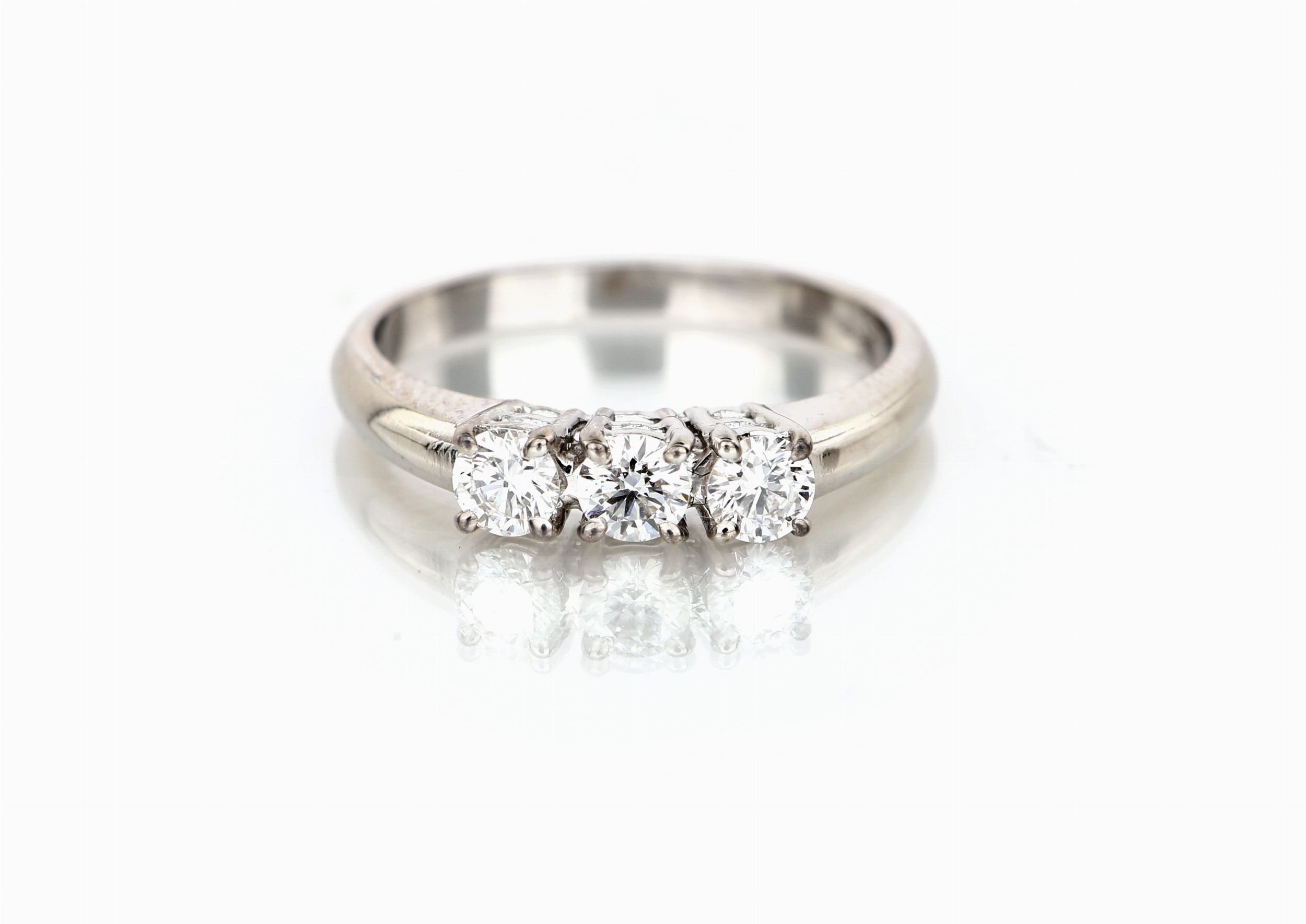 Oro bianco 750/000. Diamanti in taglio rotondo brillanti ct. 0,50 ca. prob. F - VVS1. Peso complessivo gr. 3.