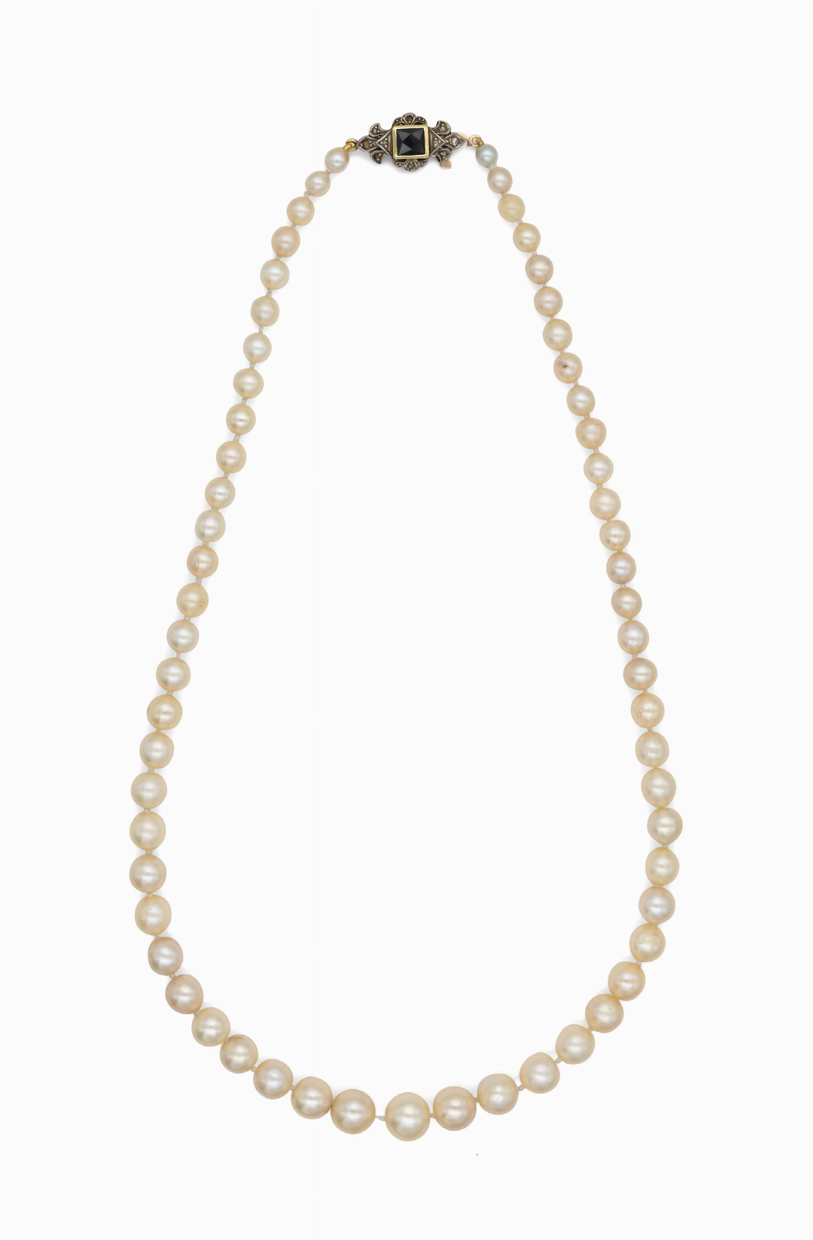 Oro giallo 750/000 e argento. Perle naturali da coltivazione in acqua marina da mm 4 a mm 9.