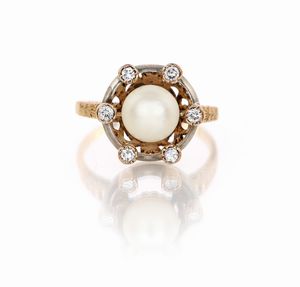 Misura 16 Oro bianco 750/000. Diamante in taglio rotondo brillante centrale ct. 0,20 e diamanti in taglio rotondo [..]
