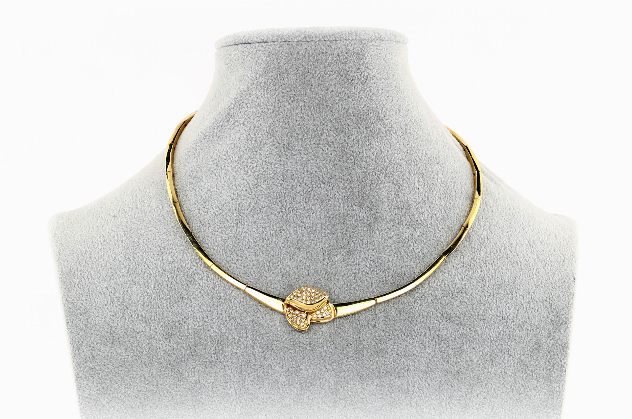 Oro giallo 750/000. Diamanti in taglio rotondo brillante ct. 1 ca. Peso complessivo gr. 32,60.