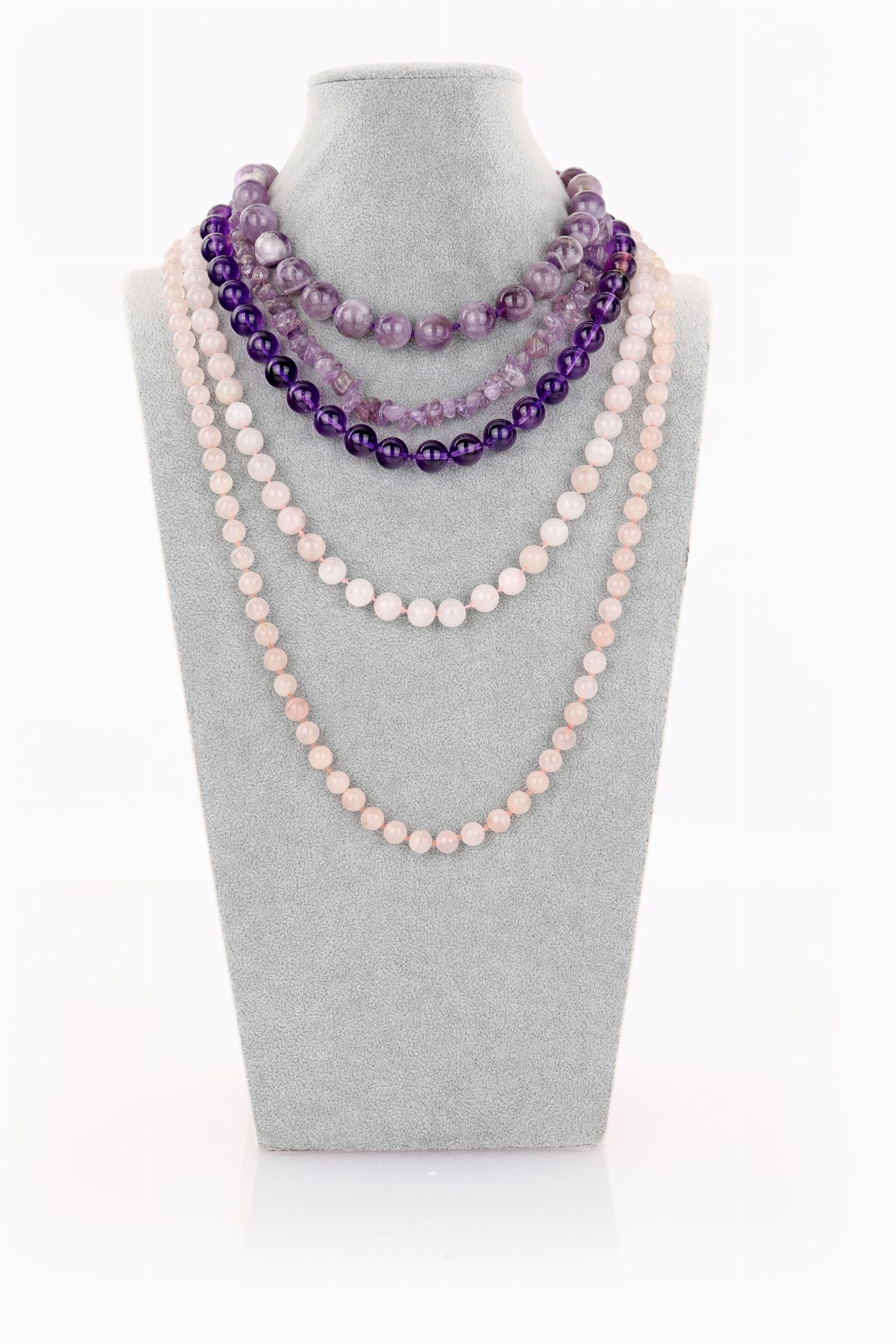 Gruppo di 5 collane in ametiste e quarzo rosa