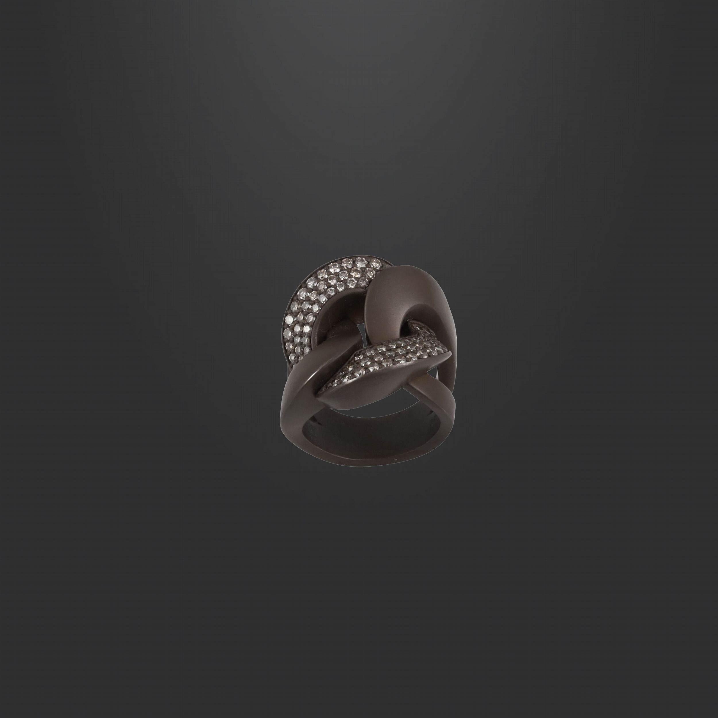 a fascia in titanio con maglia 'groumette' in pavé di brillanti 'brown' del peso complessivo di 1 ct ca. Misura 15,5 Anteo gioielli - numerato 72539366