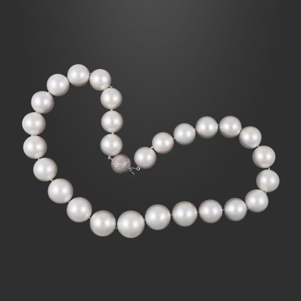 a un filo di perle coltivate 'South Sea' poste in gradazione 19,7 / 16,3 mm, chiusura sferica in oro bianco. Lunghezza 50 cm