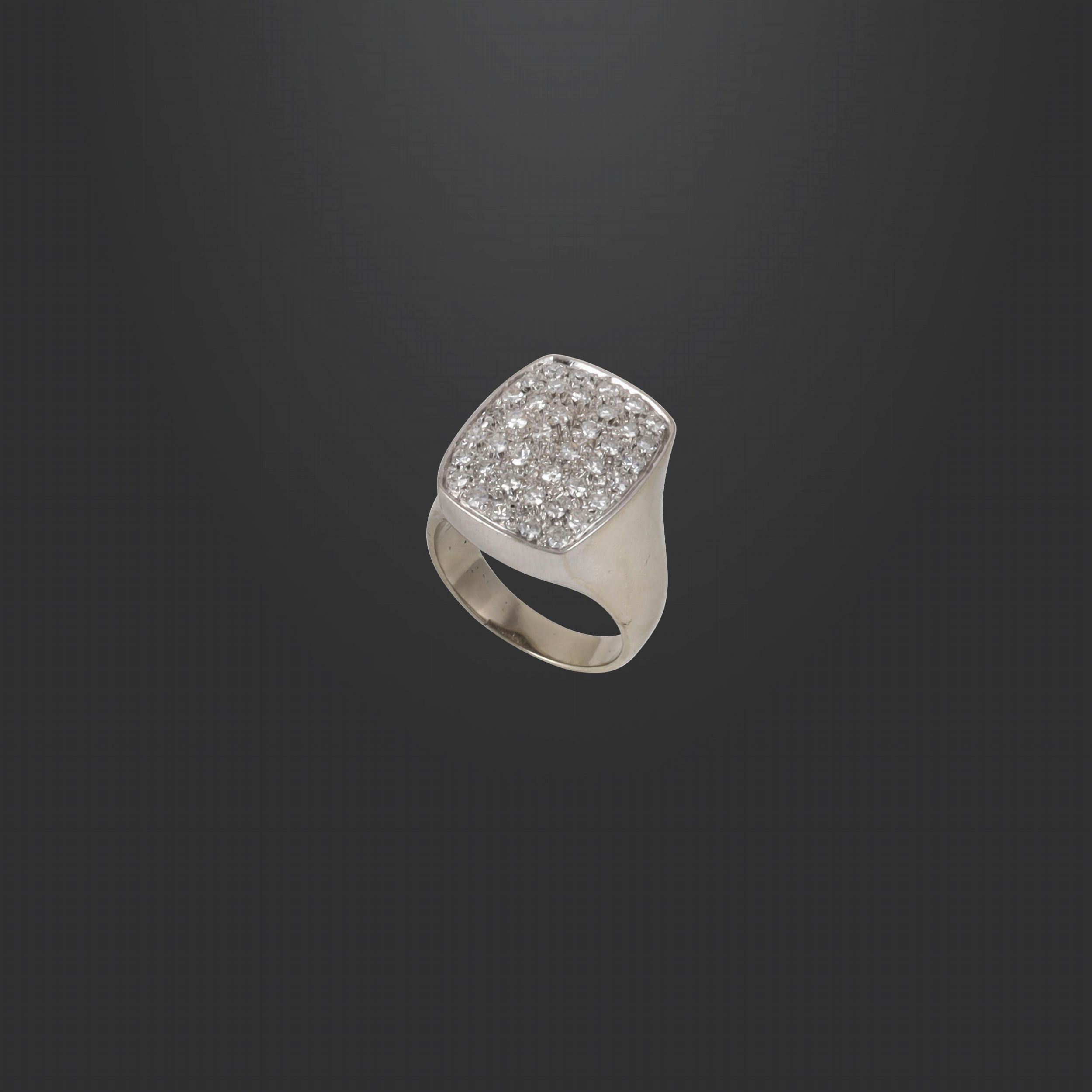 'chevalier' in oro bianco con pavé di diamanti, gr. 12,1. Misura 13