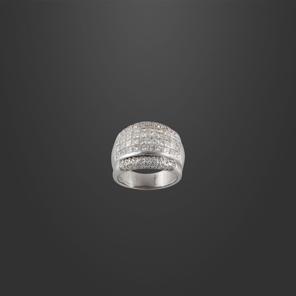 in oro rodiato a fascia con brillanti e pavé di diamanti princess del peso complessivo di 4 ct ca., gr. 18,1. Misura 20