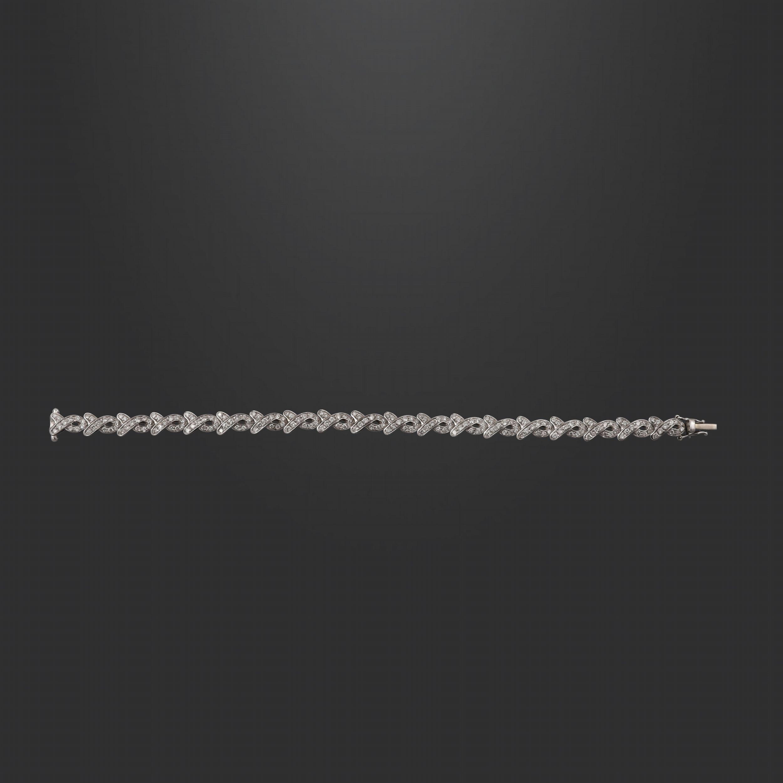 in oro bianco percorso da motivi a nastro con brillanti del peso complessivo di 3,80 ct ca., gr. 20,4. Lunghezza 18,5 cm
