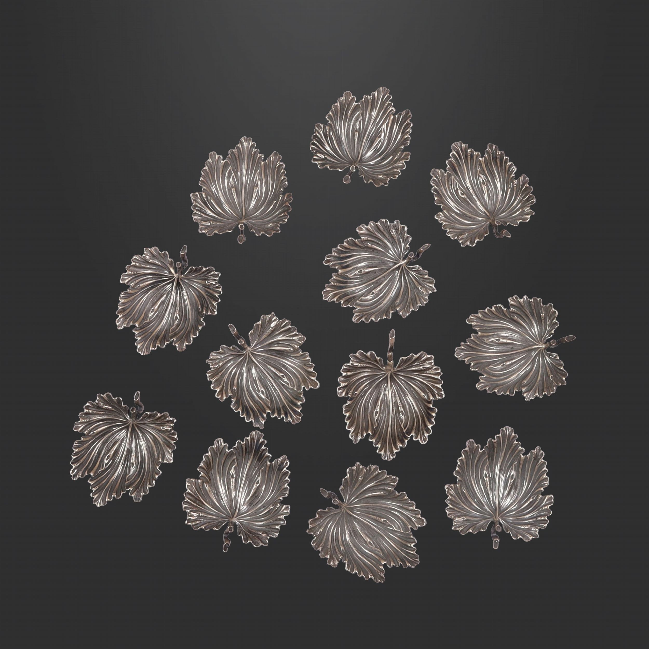 a guisa di foglia realizzati in argento 925, gr. complessivi 159 ca. Corredati da custodie originali. Firmati: Gianmaria Buccellati