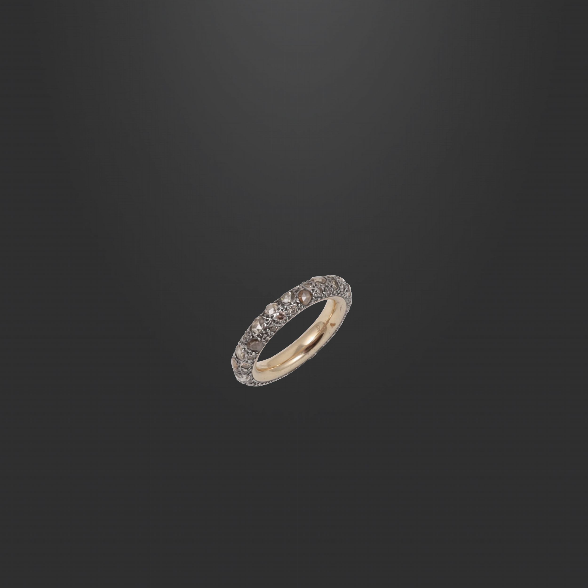 in argento 925 e oro rosa percorsa da diamanti 'brown' taglio a rosa e brillanti, gr. 6,5. Corredata da custodia originale. Misura 12,5 Firmato: Pomellato