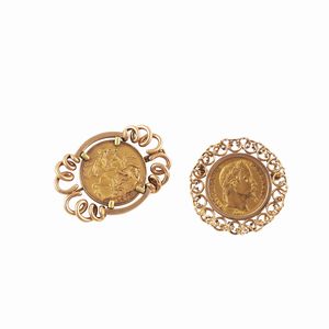 pendenti realizzati in oro giallo, ciascuno con una perla coltivata 'South Sea' 16/16,5 x 14/14,5 mm ca. sostenuta [..]