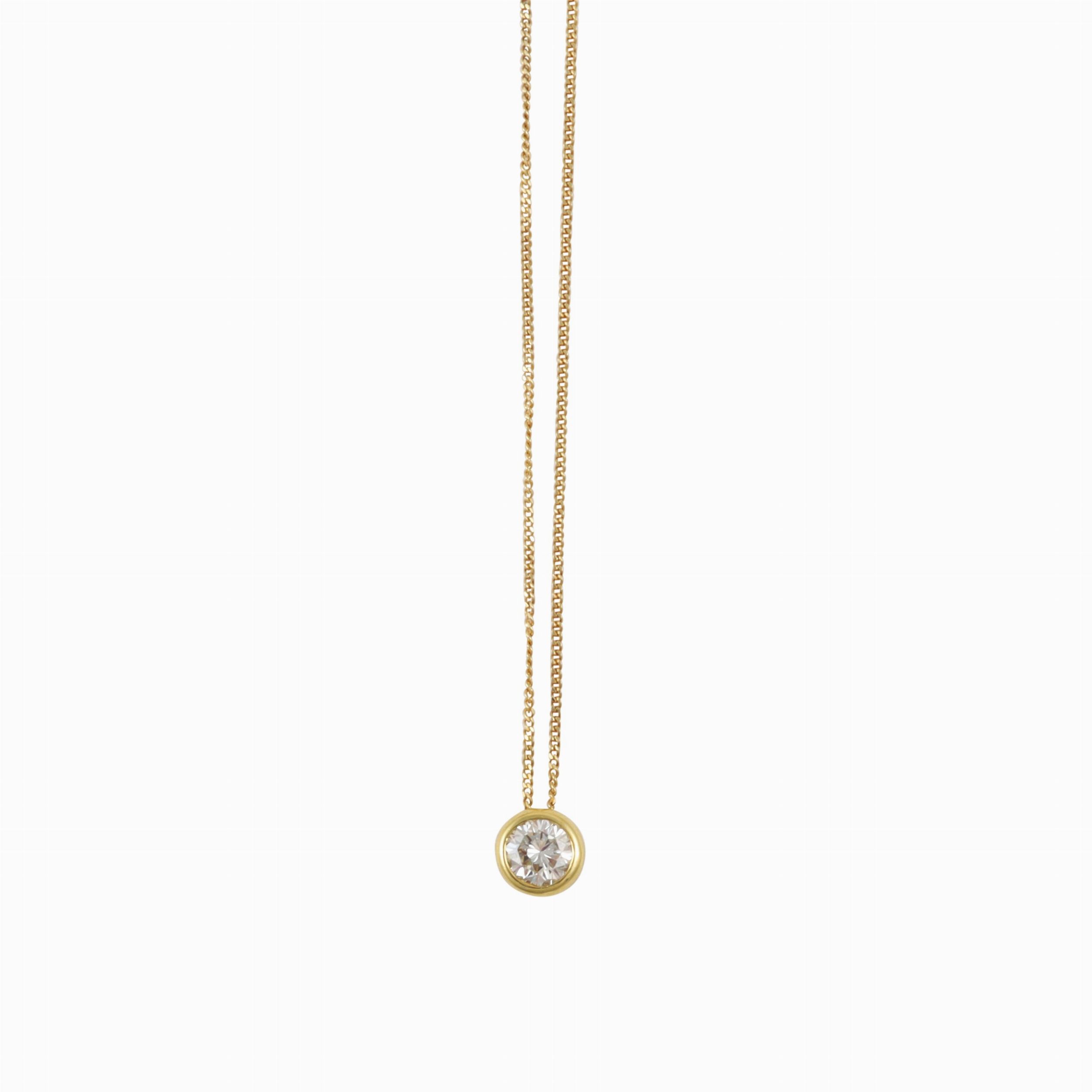 sottile catena con brillante del peso di 0,90 ct ca. montato entro castone scorrevole, gr. 2,9. Lunghezza 39,5 cm