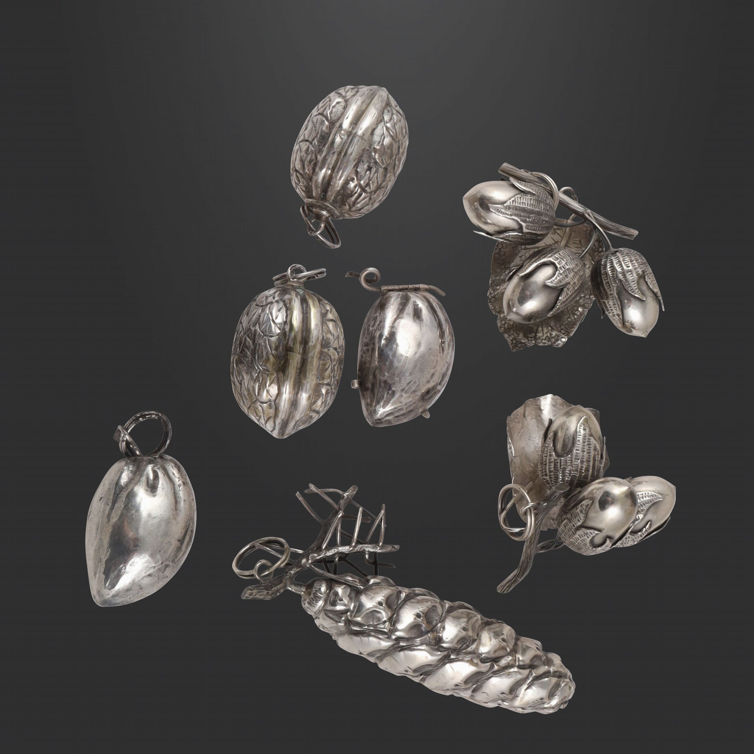raffiguranti noci, nocciole, mandorle e pigne in argento gr. complessivi 340 ca. Due firmati Cusi