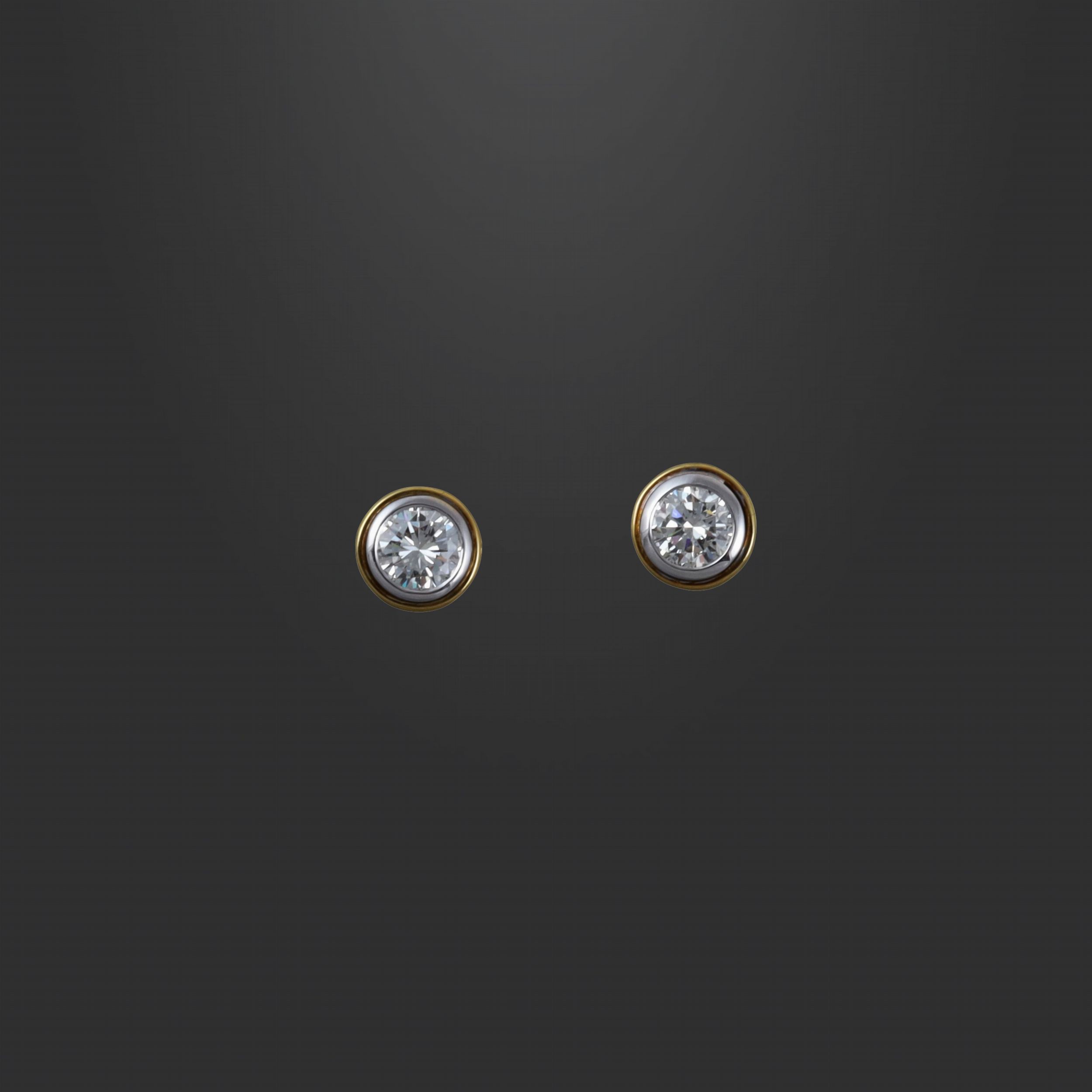 in oro giallo e bianco con brillanti del peso di 0,61 ct e 0,60 ct, gr. 4,6. Analisi gemmologiche n. F653279 del 16/09/1980 e n. F1161568 del 10/03/1981 rilasciate dal laboratorio IGI di Anversa