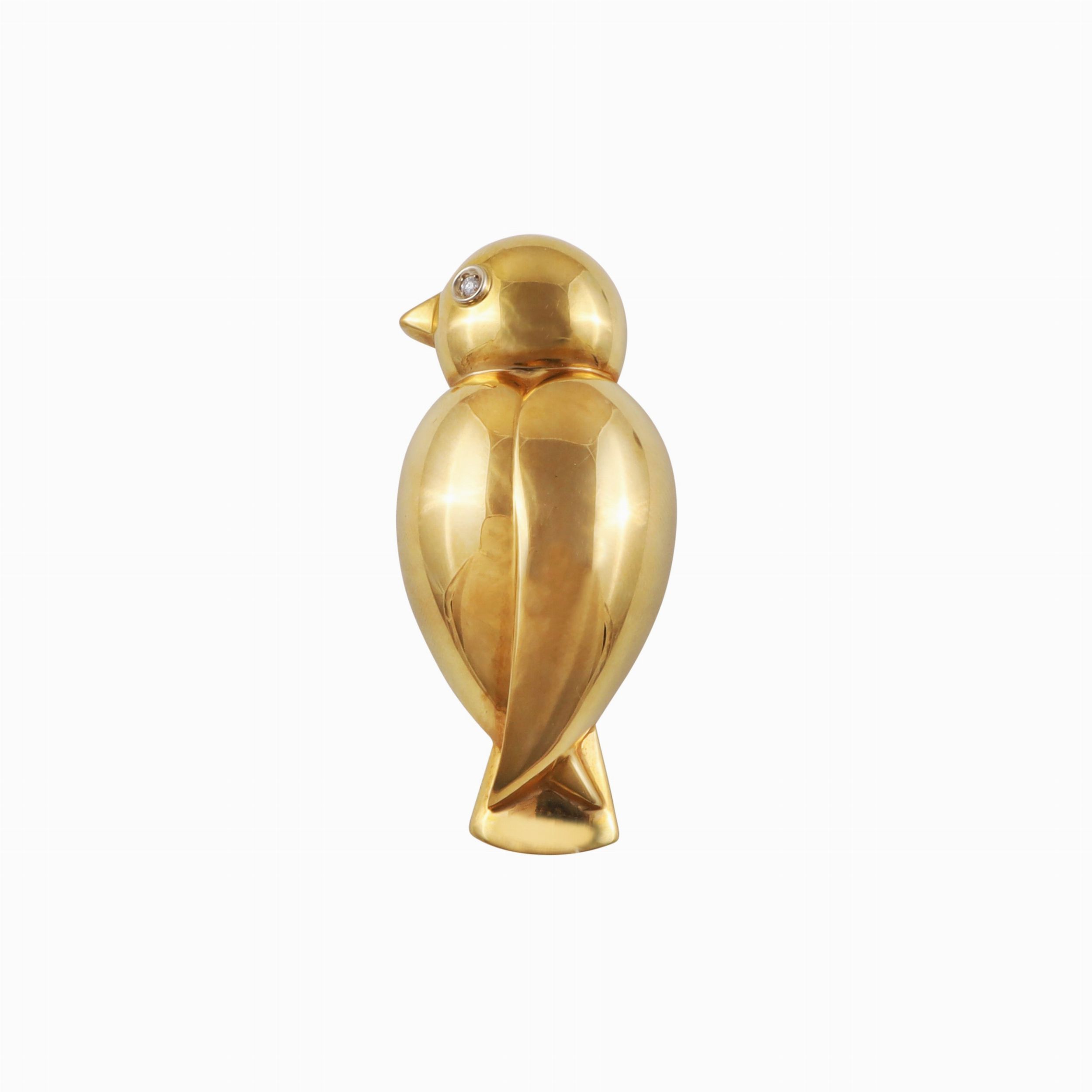 raffigurante una rondine con brillante per occhio realizzata in oro giallo e bianco, gr. 20,3. Dimensione 5 x 2,2 cm ca. Firmata: Pomellato