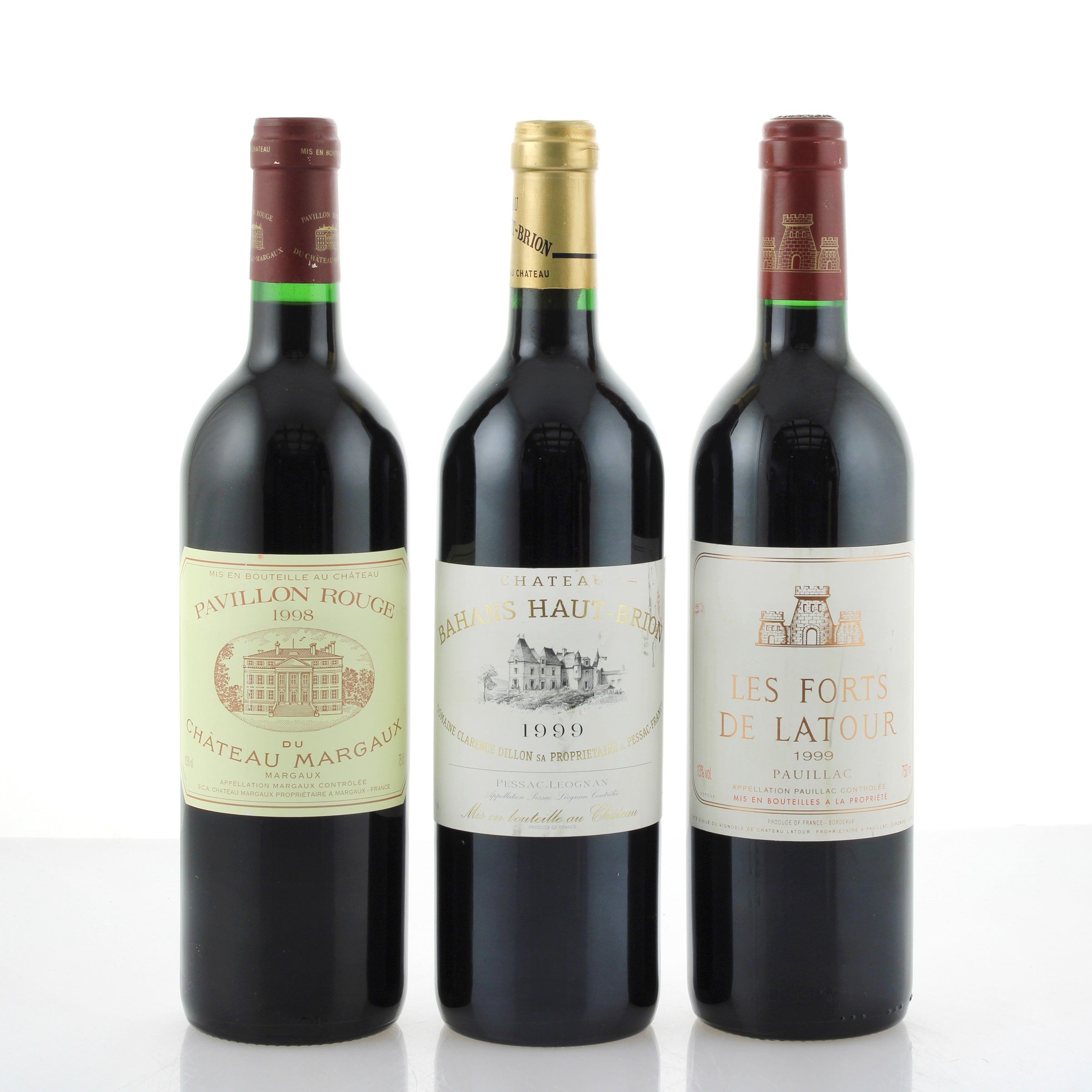 Bordeaux 1 bt Chateau Latour, Les forts de Latour 1999, collo 1 bt Chateau Margaux, Pavillon Rouge 1998, collo 1 bt Chateau Bahans Haut-Brion 1999, collo