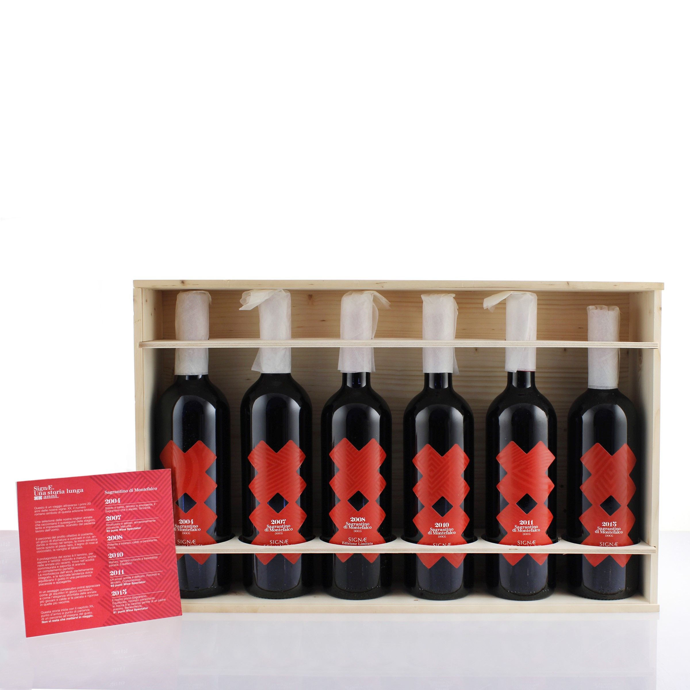 Umbria, edizione limitata 1 bt 2004, collo 1 bt 2007, collo 1 bt 2008, collo 1 bt 2010, collo 1 bt 2011, collo 1 bt 2015, collo scatola originale di legno