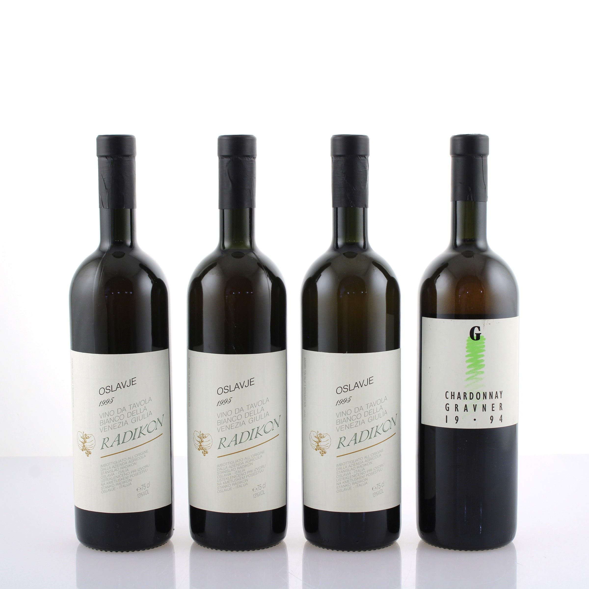 Friuli Venezia Giulia 1 bt Gravner, Chardonnay 1994, base del collo 3 bt, Radikon, Oslavje Bianco 1995, base del collo