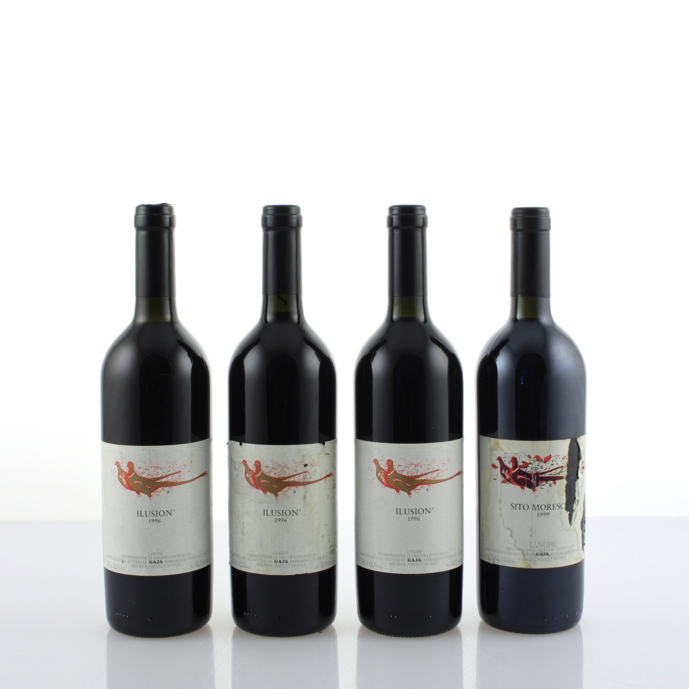 Piemonte 3 bt Illusion 1996, 1 bt collo, 2 bt base del collo, un'etichetta lievemente usurata, un tappo lievemente depresso 1 bt Sito Moresco 1999, base del collo, un'etichetta usurata