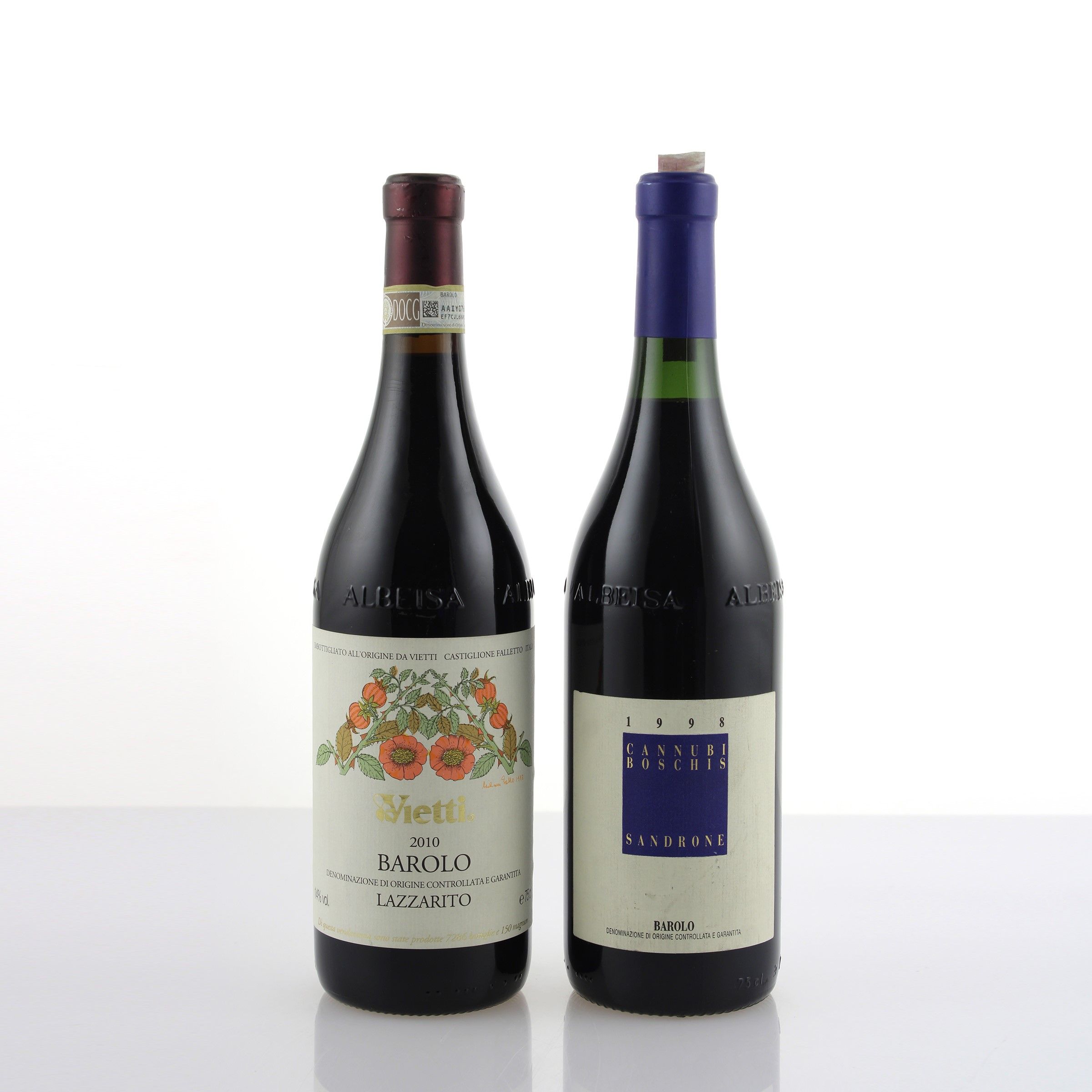 Piemonte 1 bt, Vietti, Barolo Lazzarito 2010, collo 1 bt, Sandrone, Barolo Cannubi Boschis 1998, RP 94/100, base del collo