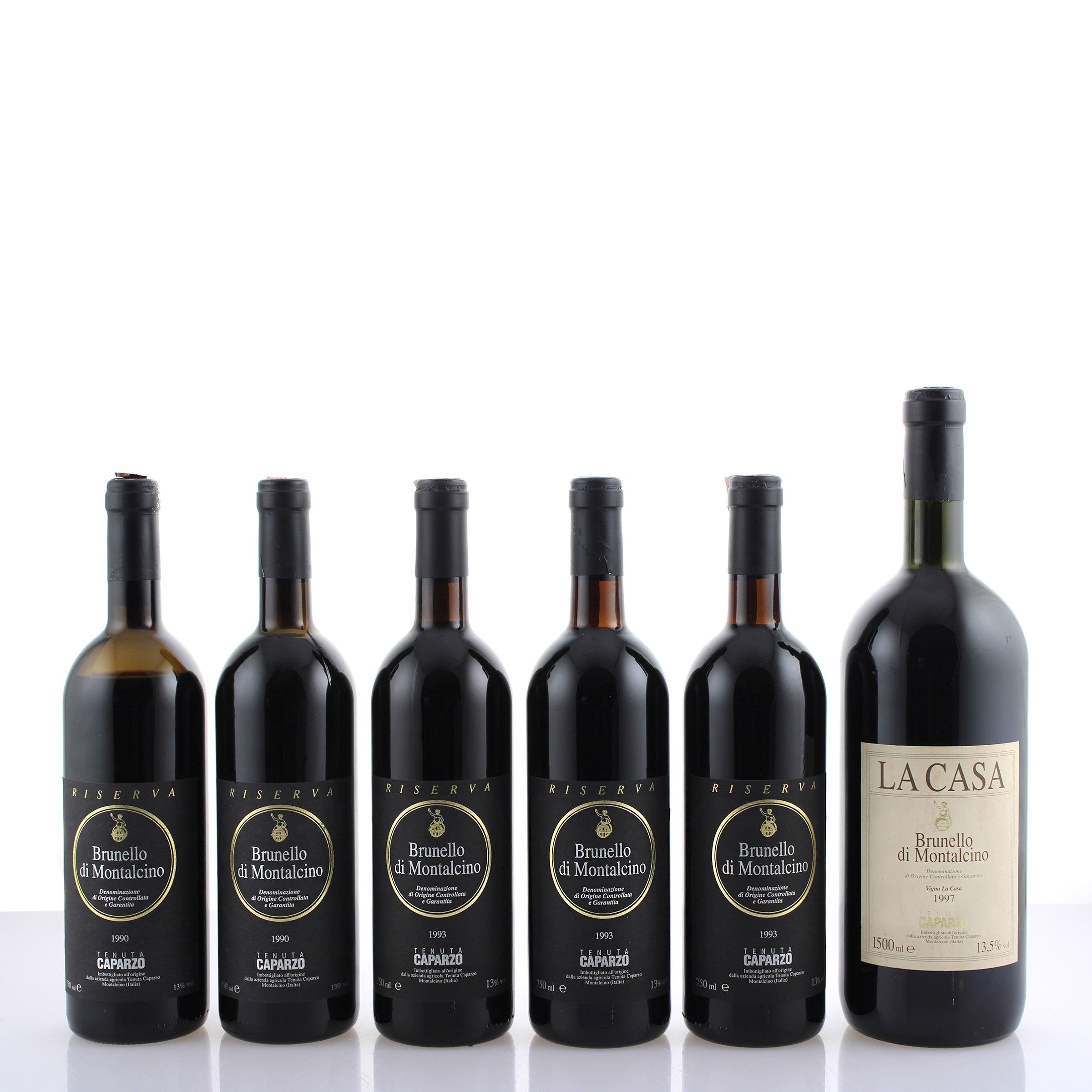 Toscana 1 Mg Vigna La Casa 1997, collo 3 bt Riserva 1993, base del collo 2 bt Riserva 1990, 1 bt, base del collo, 1 bt, spalla media