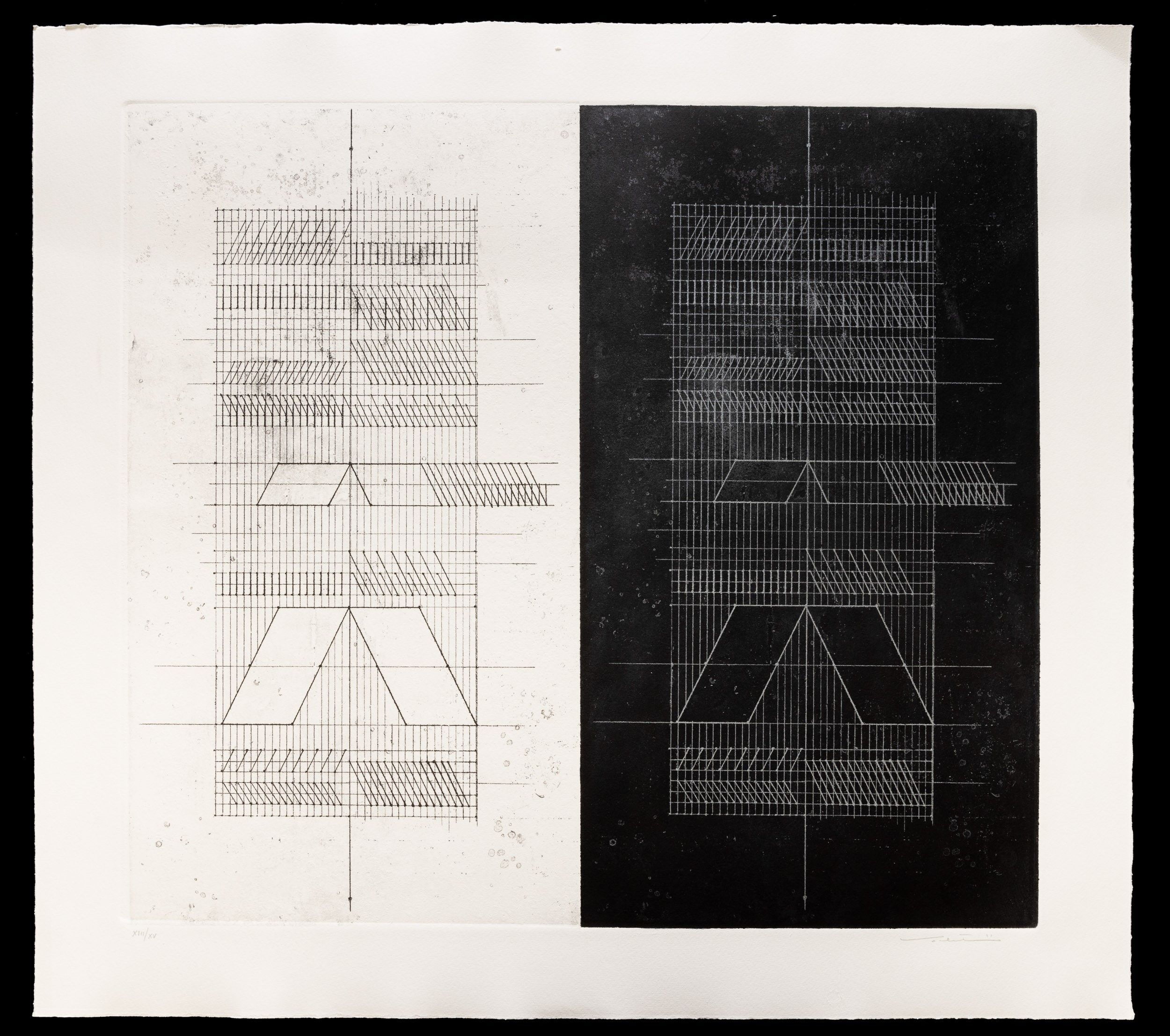 1981 es. XIII/XV dimensioni lastra: cm 57 x 63,8 firmato in basso a destra, numerato in basso a sinistra carta Magnani di Pescia tiratura XV stampatore Sardella, Milano