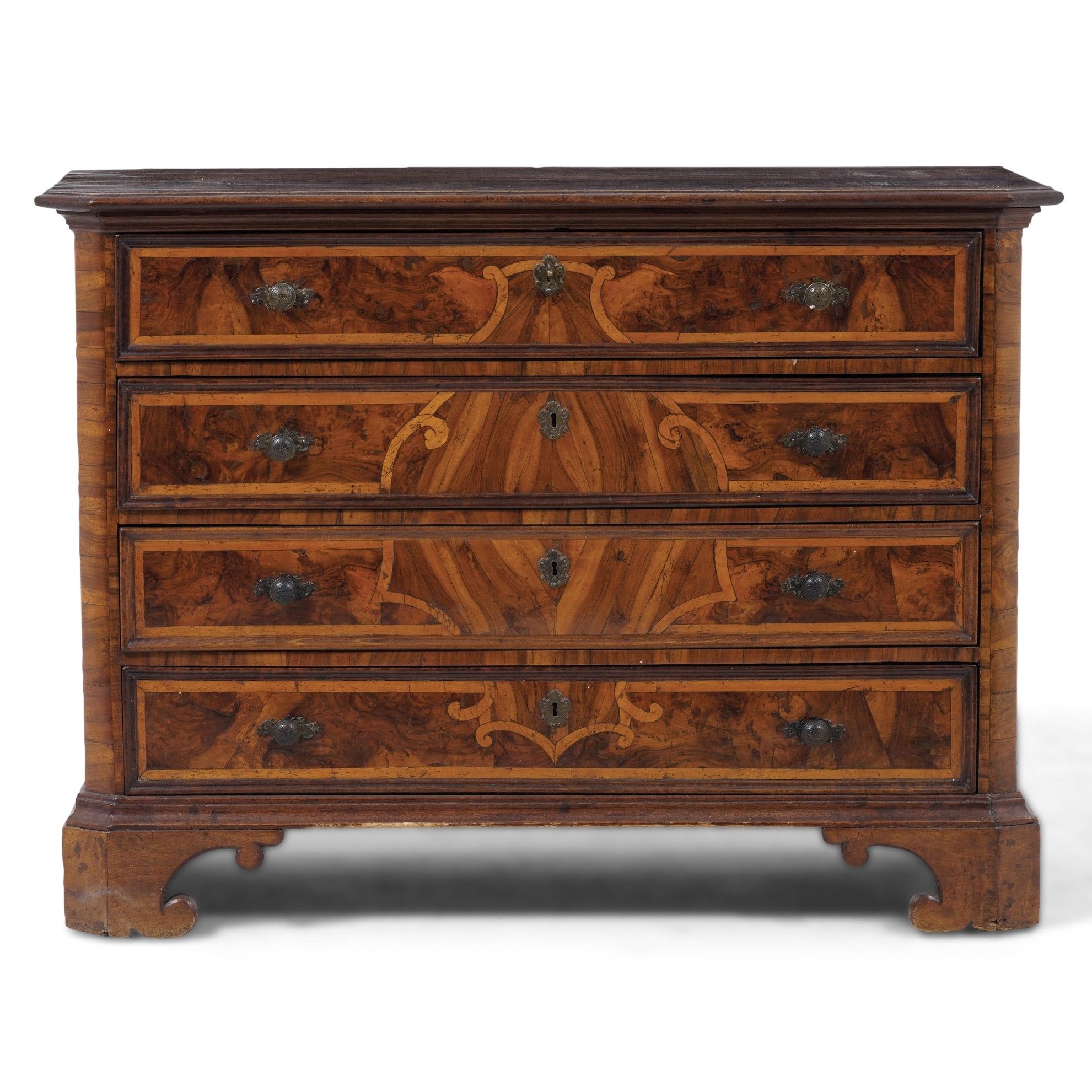 Cassettone lastronato in radica e filettato. XVIII secolo