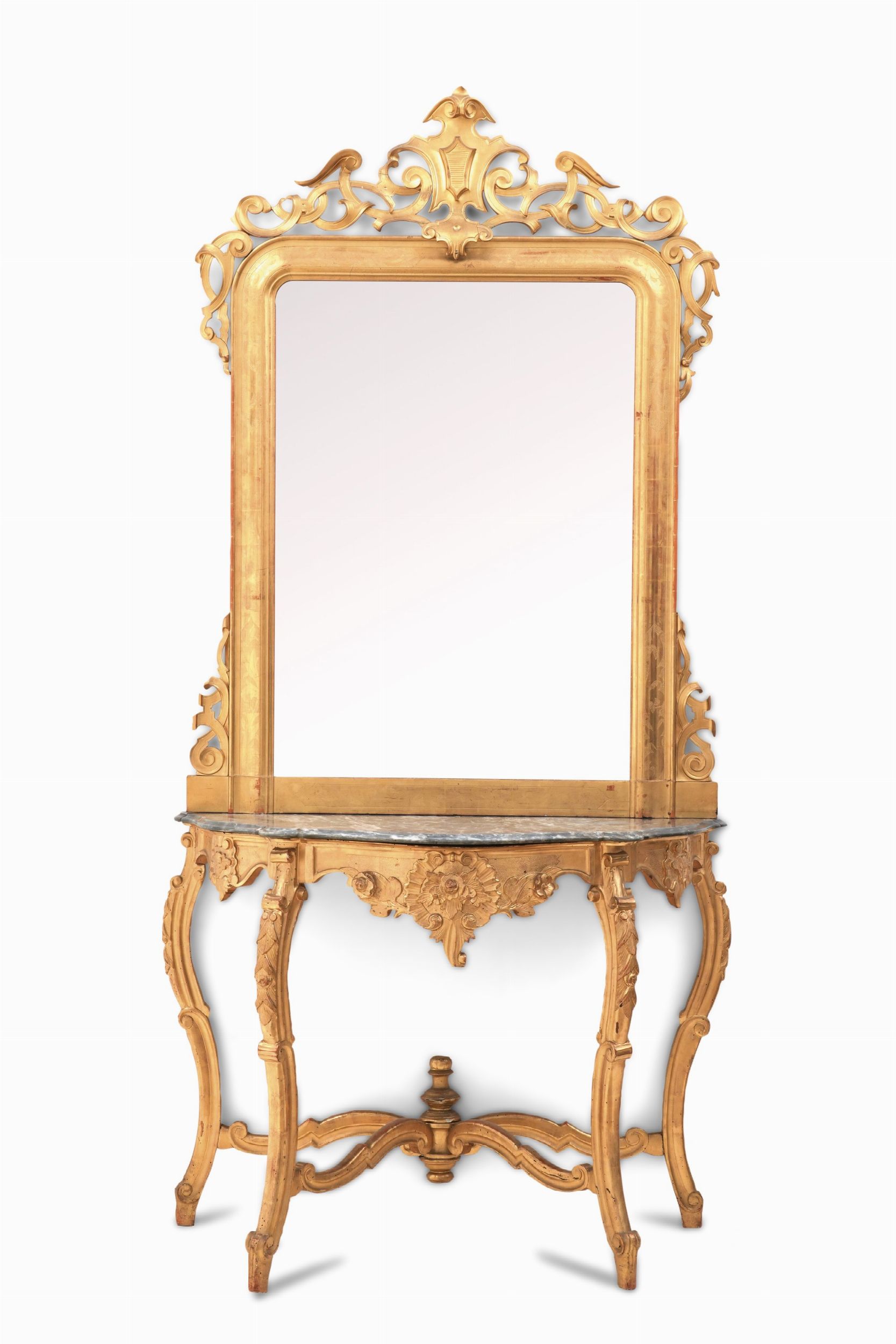 Console con specchio in legno intagliato e dorato. XIX-XX secolo