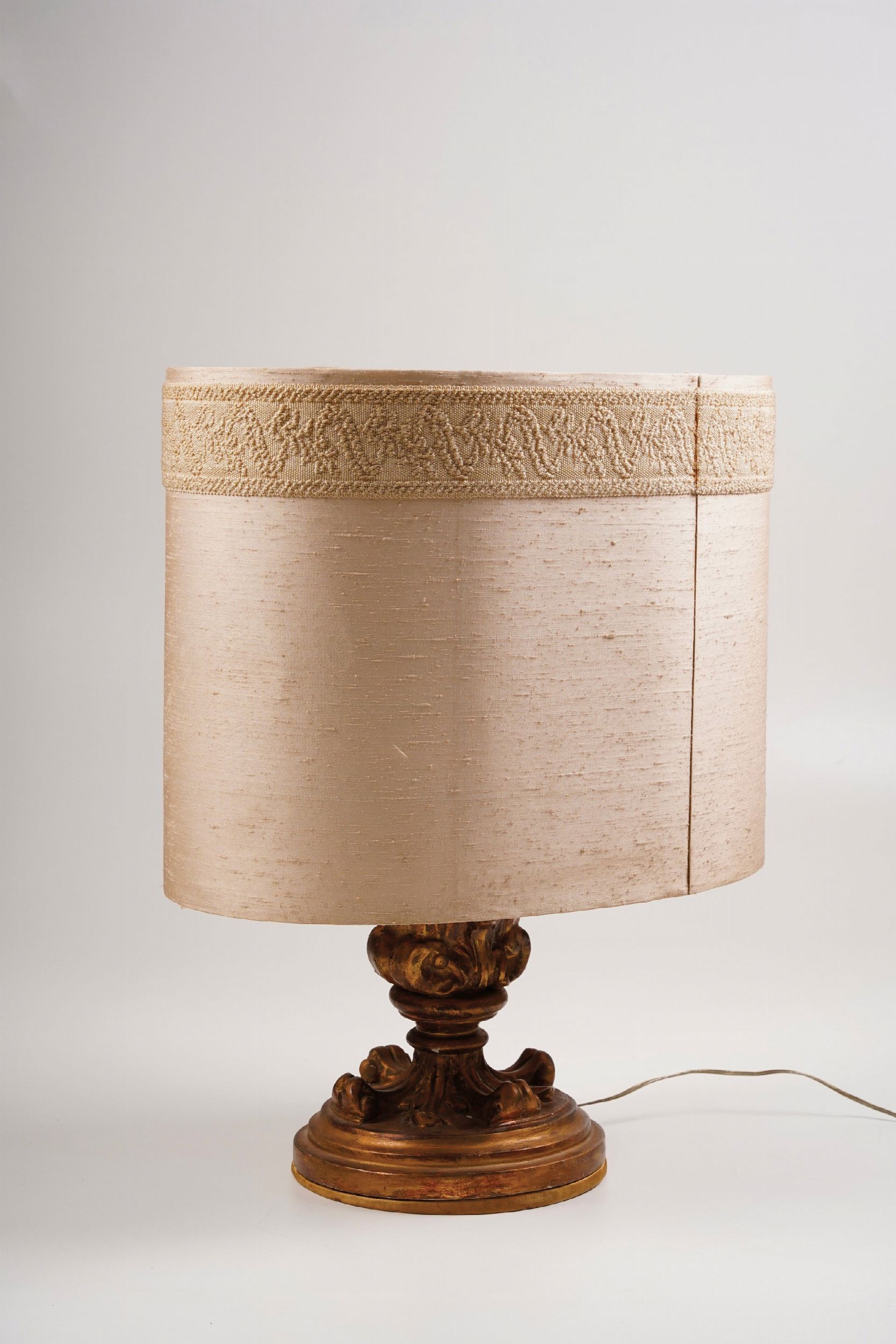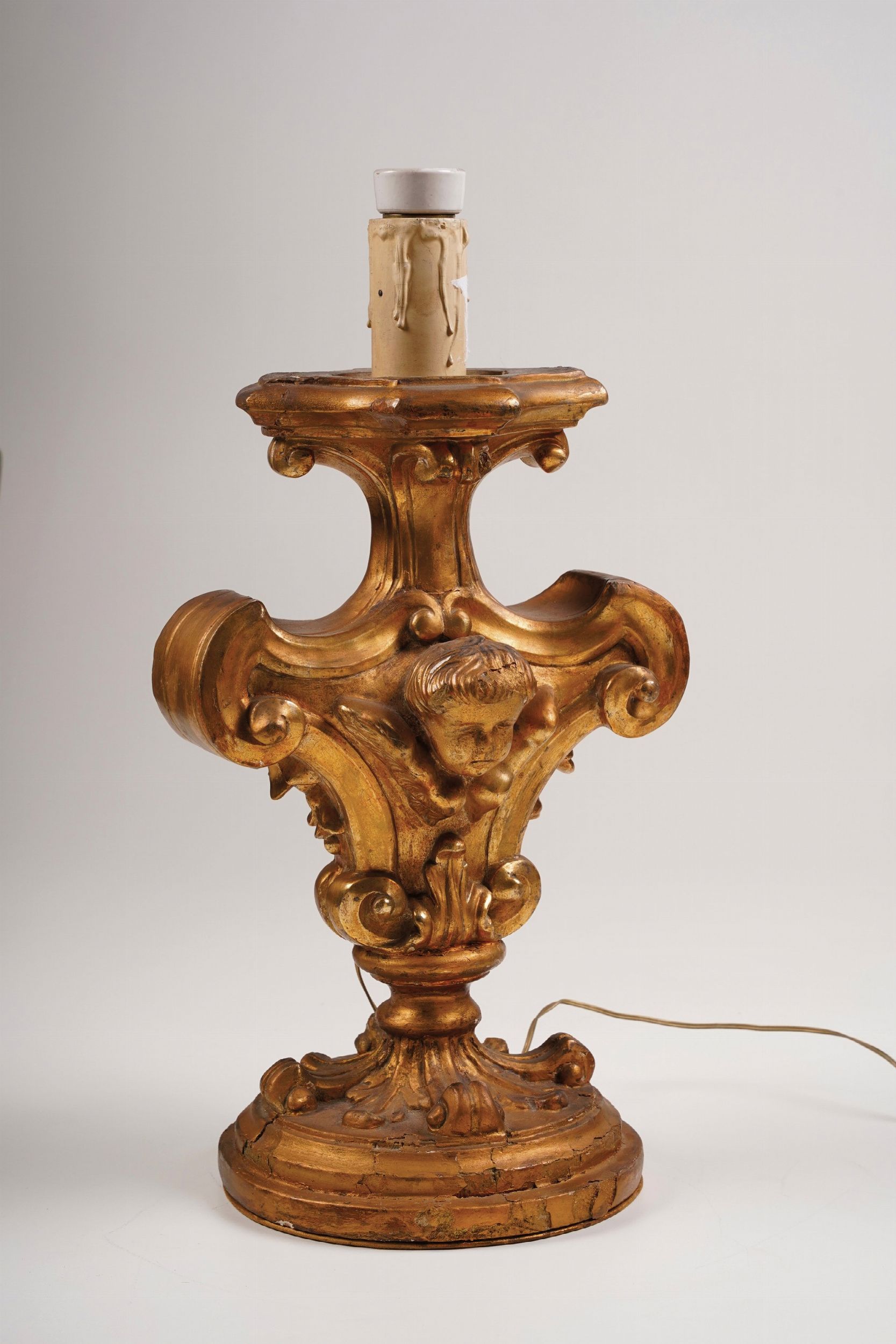 Coppia di lampade in legno intagliato e dorato, XIX secolo