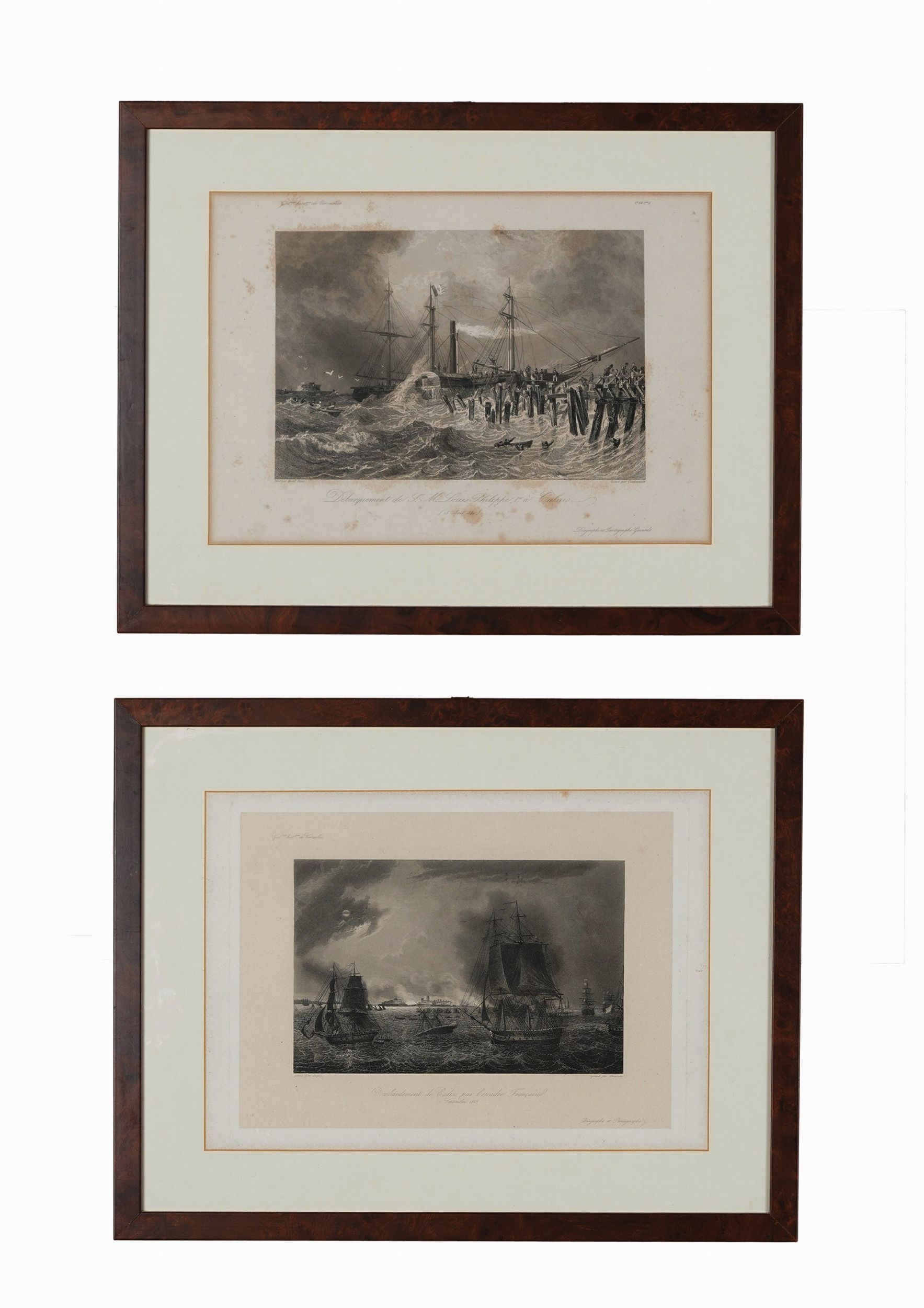 Coppia di stampe in cornice raffiguranti Velieri