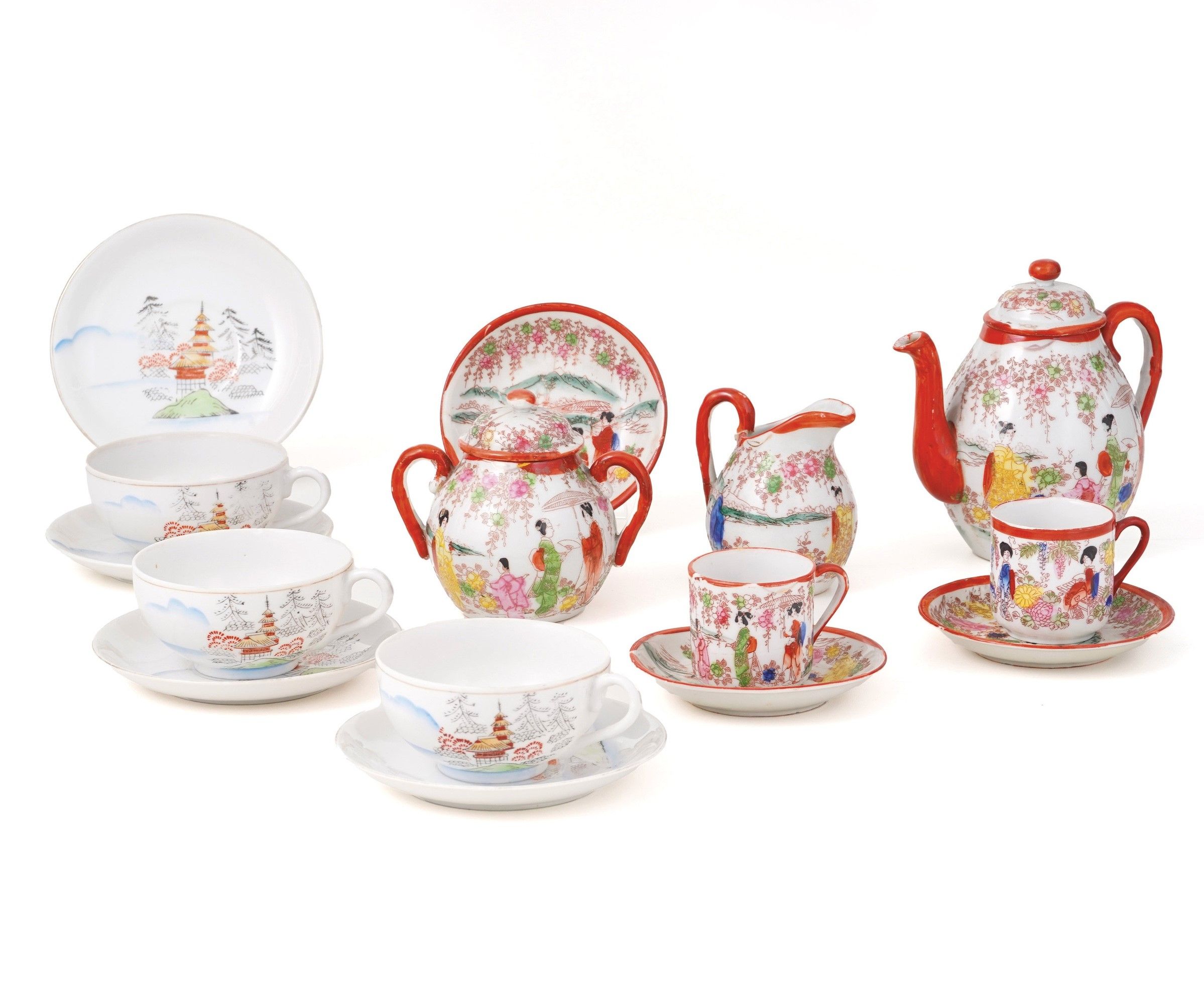 Due servizi da tè e caffè in porcellana. Giappone XX secolo