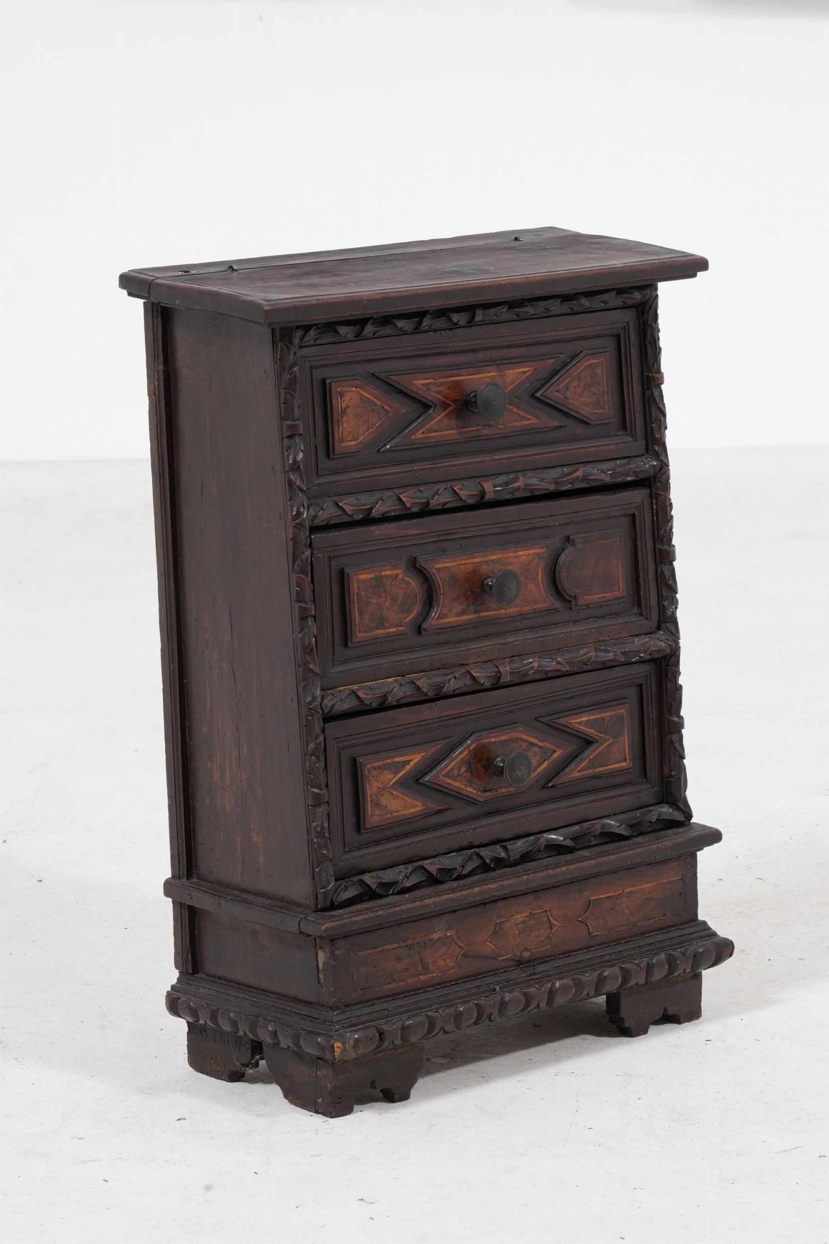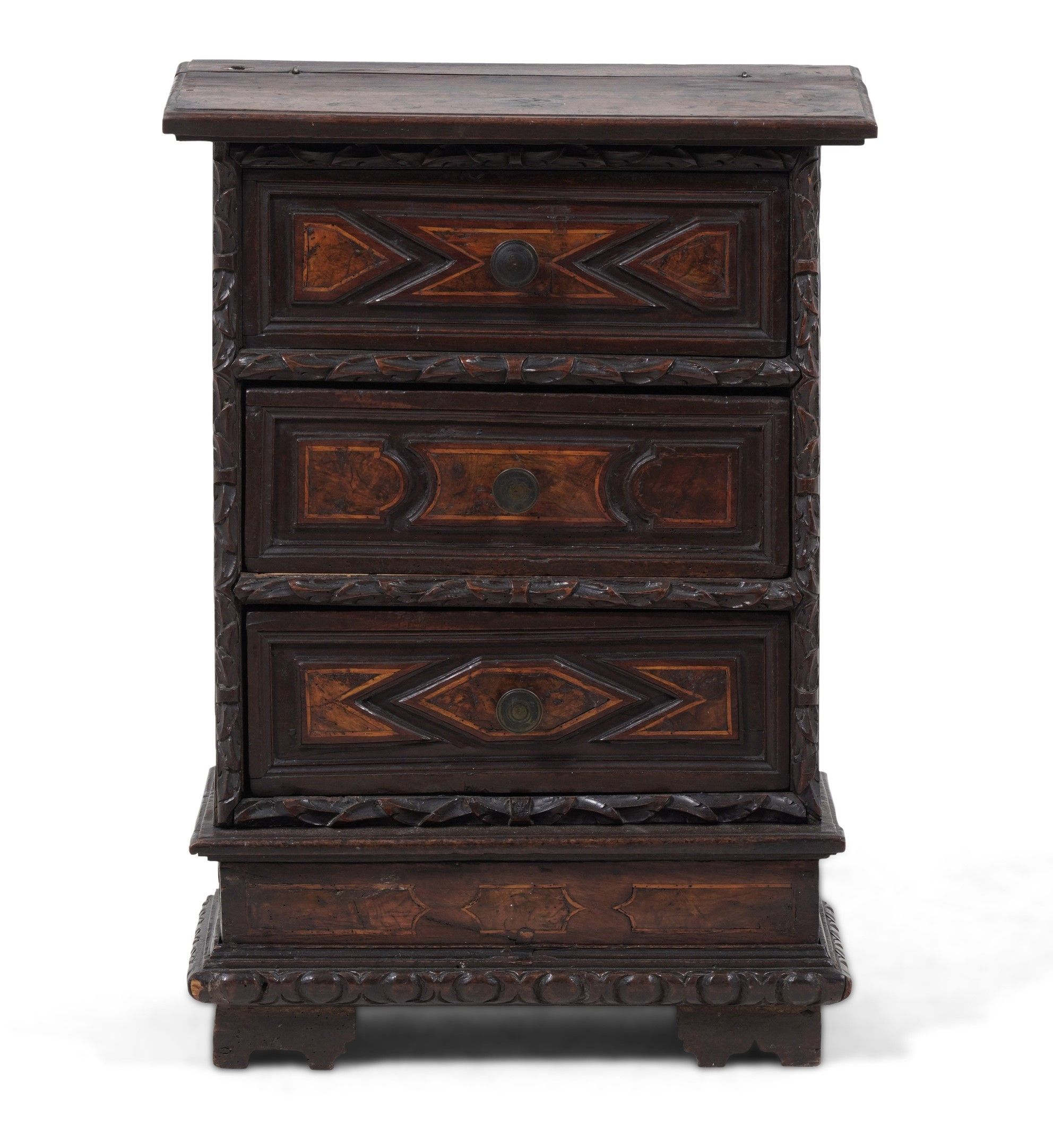 Inginocchiatoio (modificato) in noce con fronte pannellato ed intarsiato in varie [..]