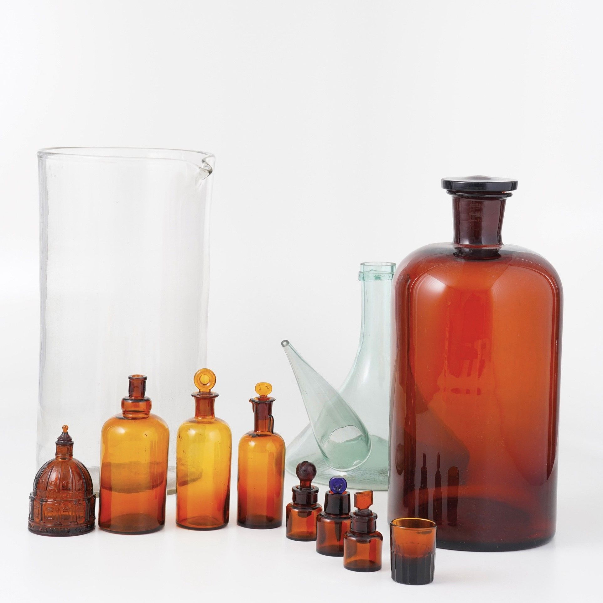 Lotto di bottigliette e oggetti in vetro. XX secolo