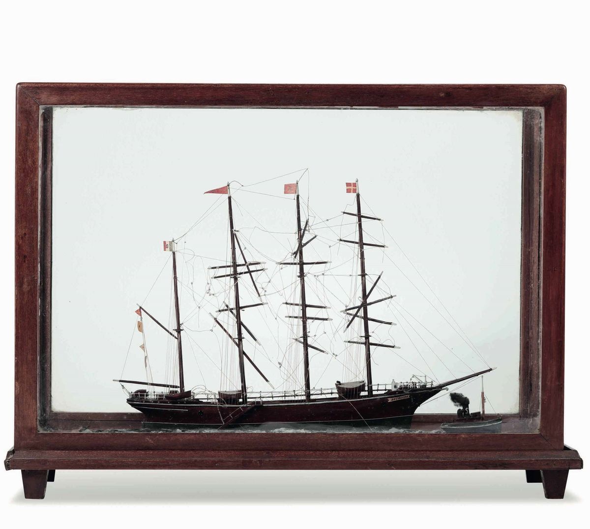 Modello di veliero a quattro alberi in teca, Italia XX secolo