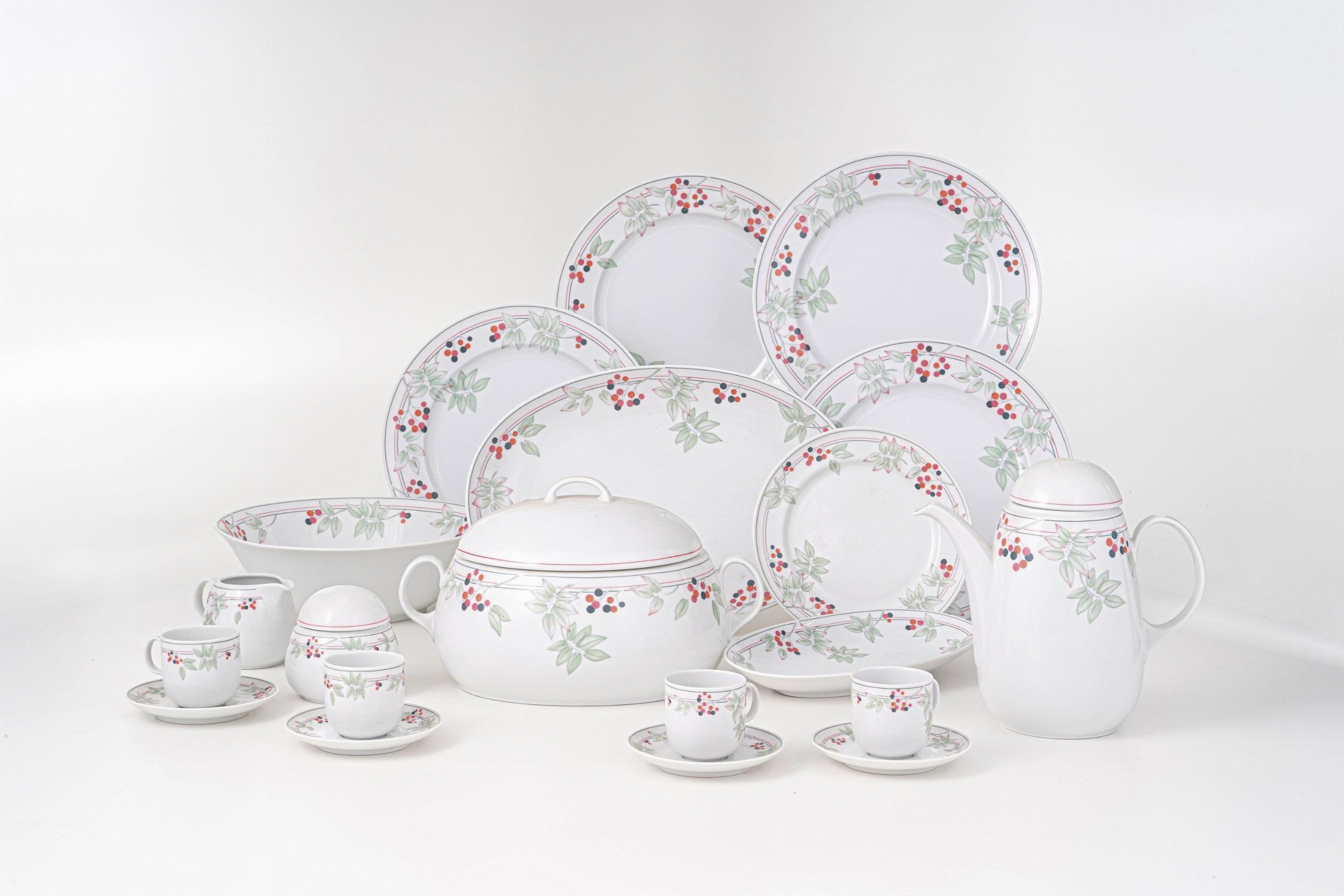 Servizio piatti in ceramica dipinto con ciliege. Seltmann Weiden Bavaria