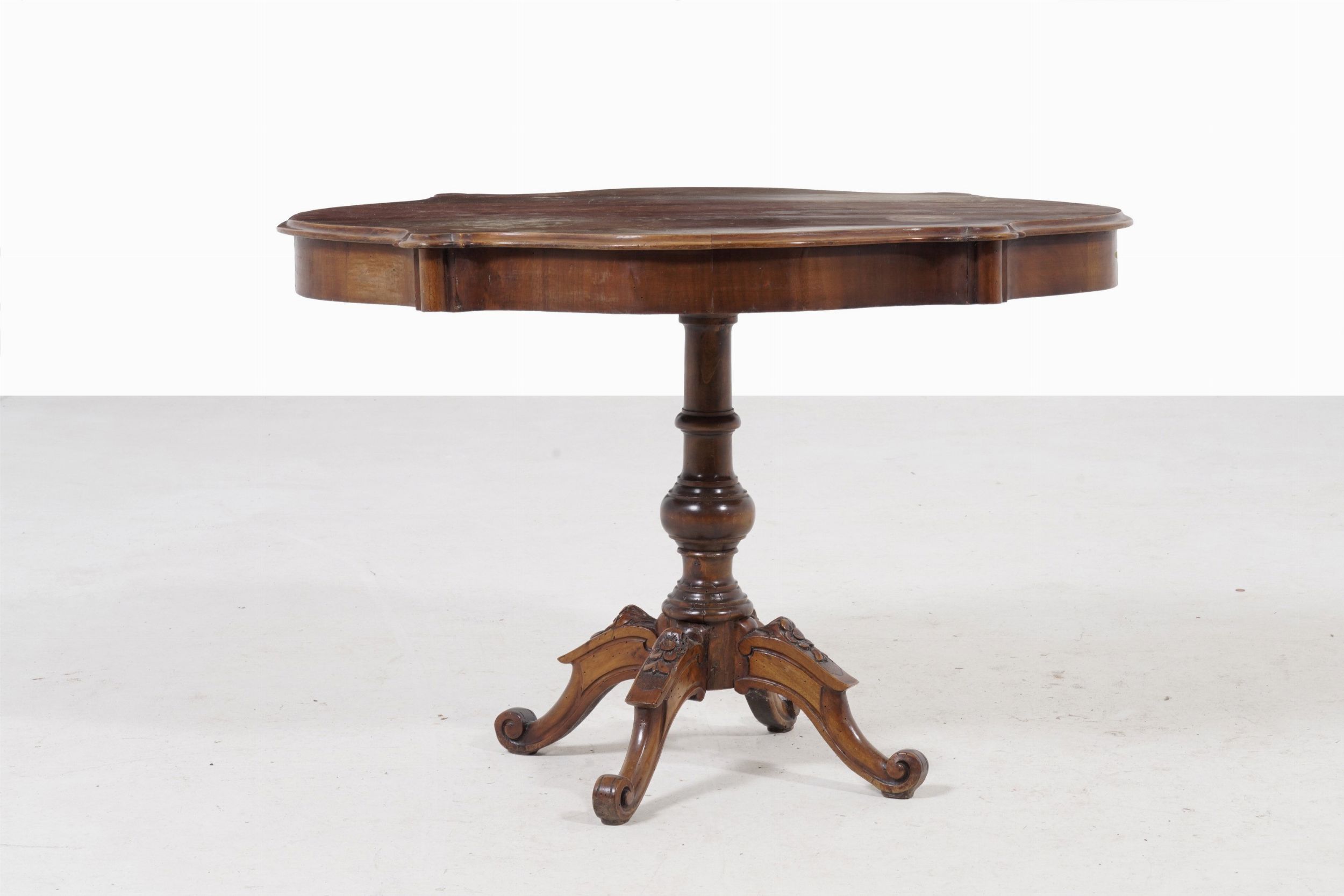 Tavolo a biscotto e tre sedie. XIX secolo