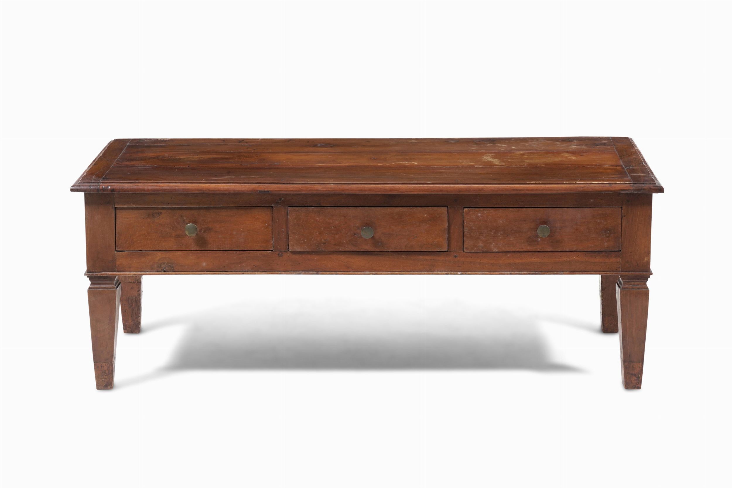 Tavolo basso a tre cassetti. Costruito con elementi antichi