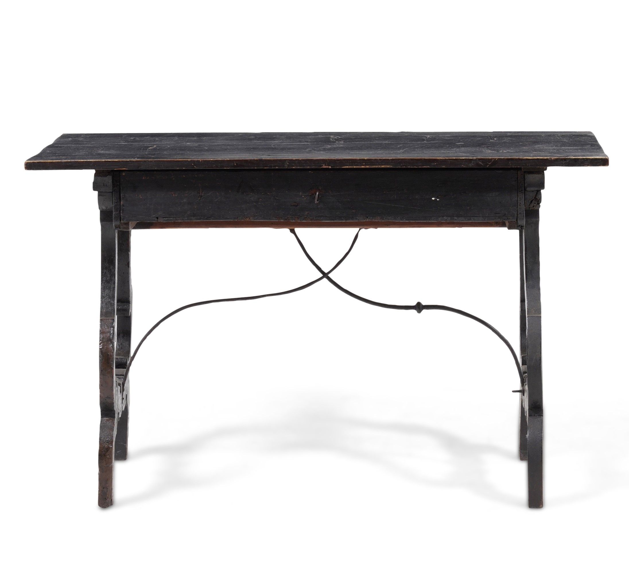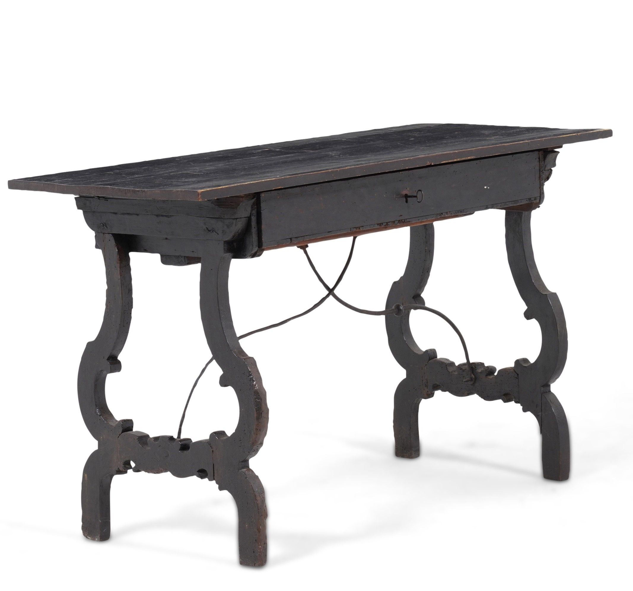 Tavolo fratino con gambe a lira in legno ebanizzato. XVIII-XIX secolo