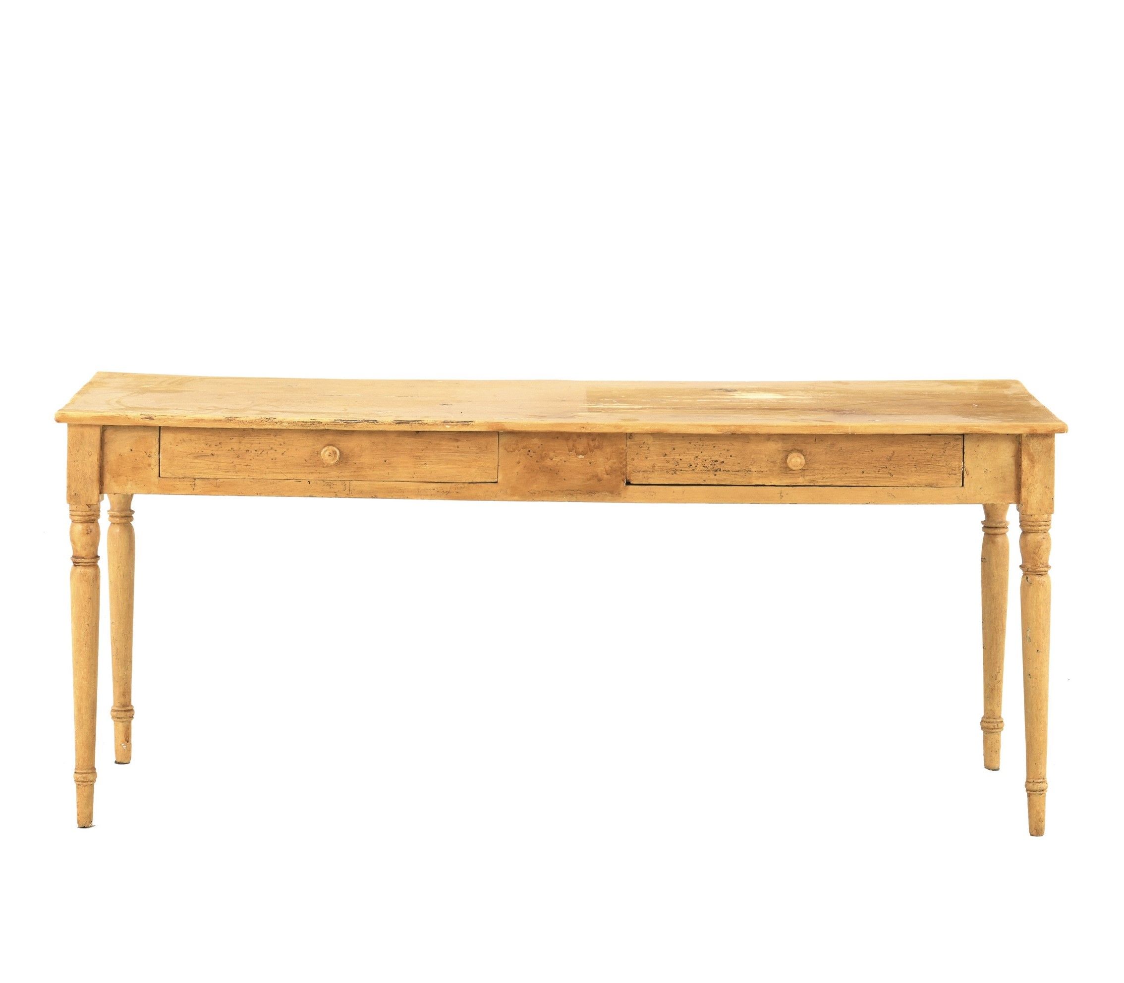 Tavolo laccato con gambe troncoconiche, due cassetti sotto al piano